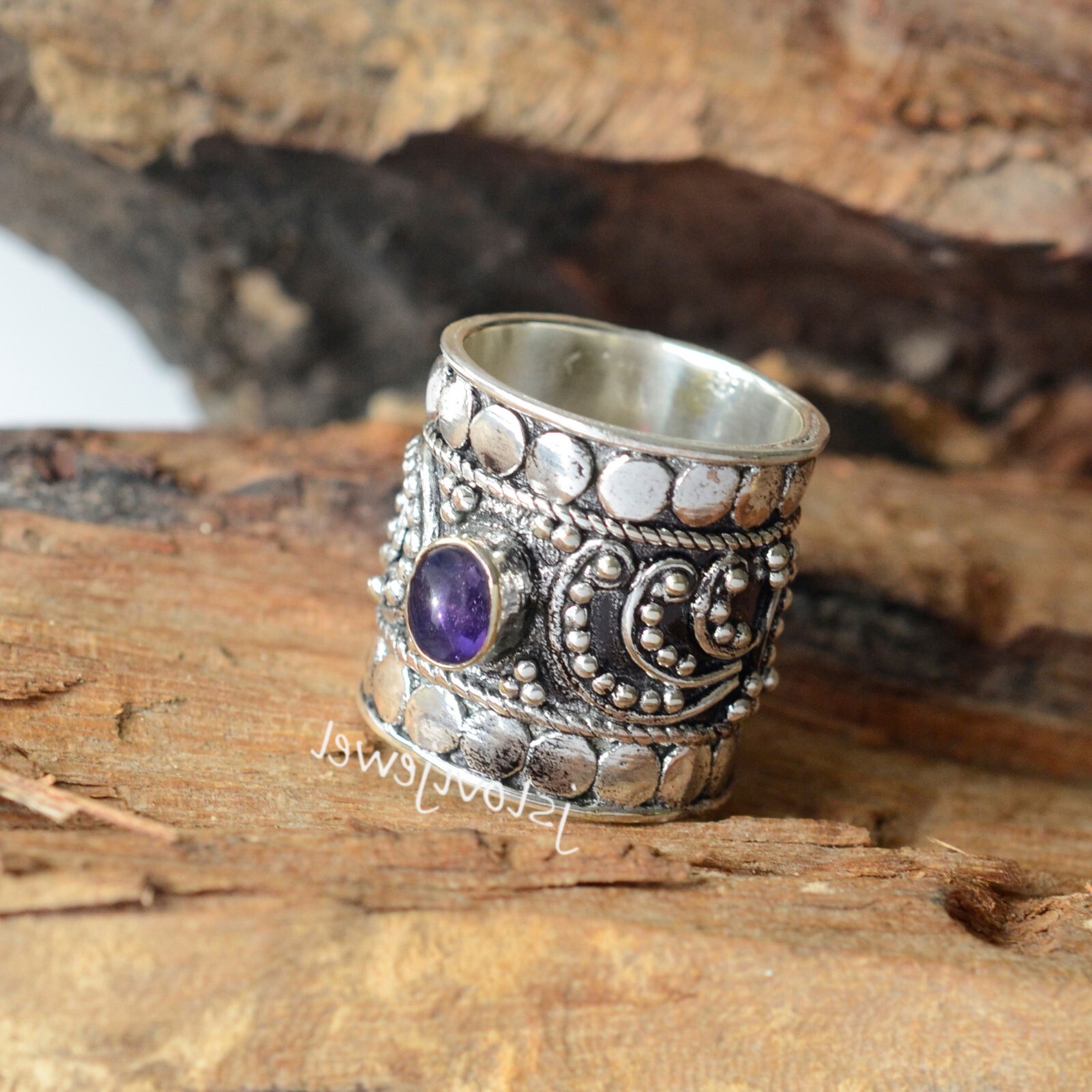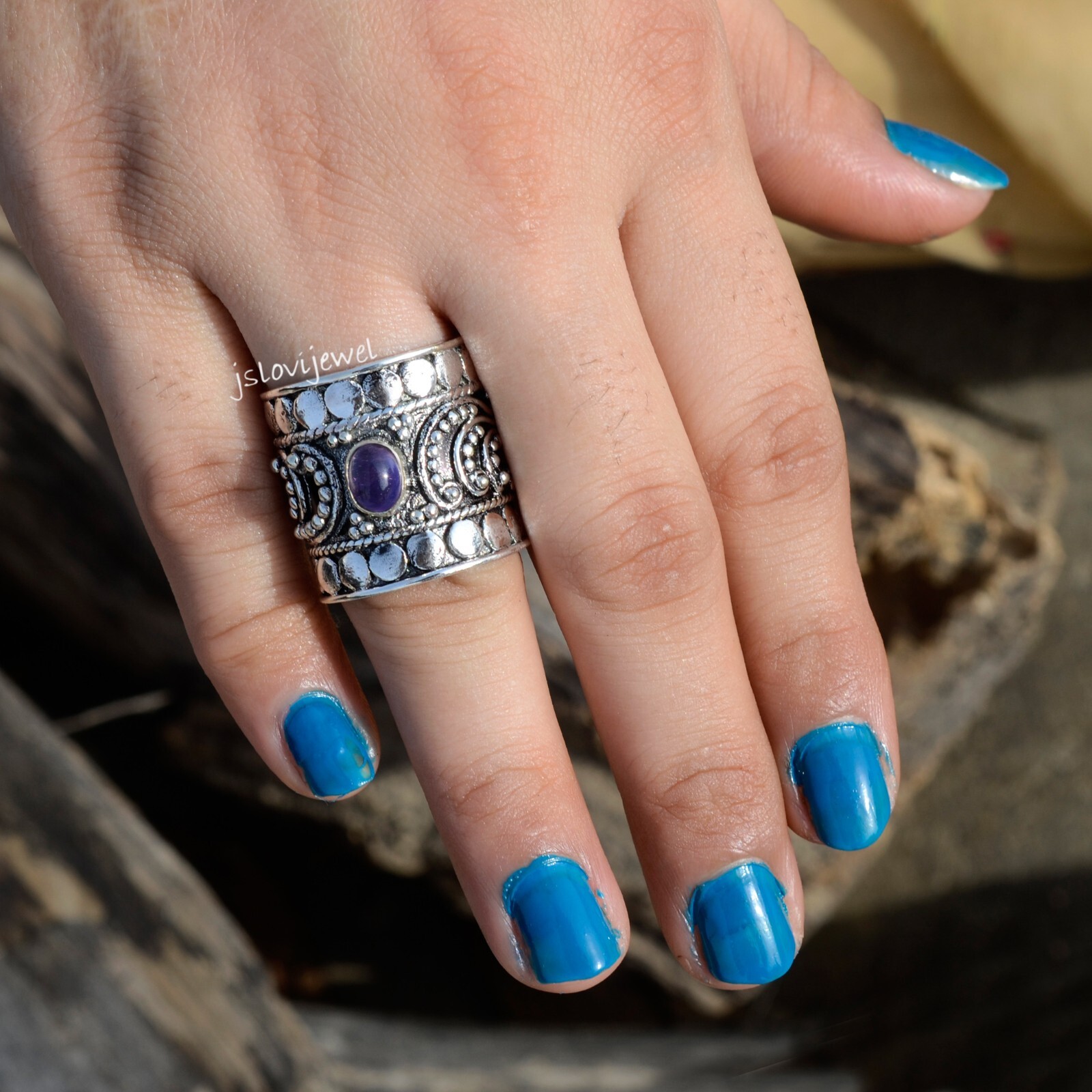 как выглядит Amethyst Gemstone 925 Sterling Silver Oxidized Spinner Ring Everyone Jewelry фото