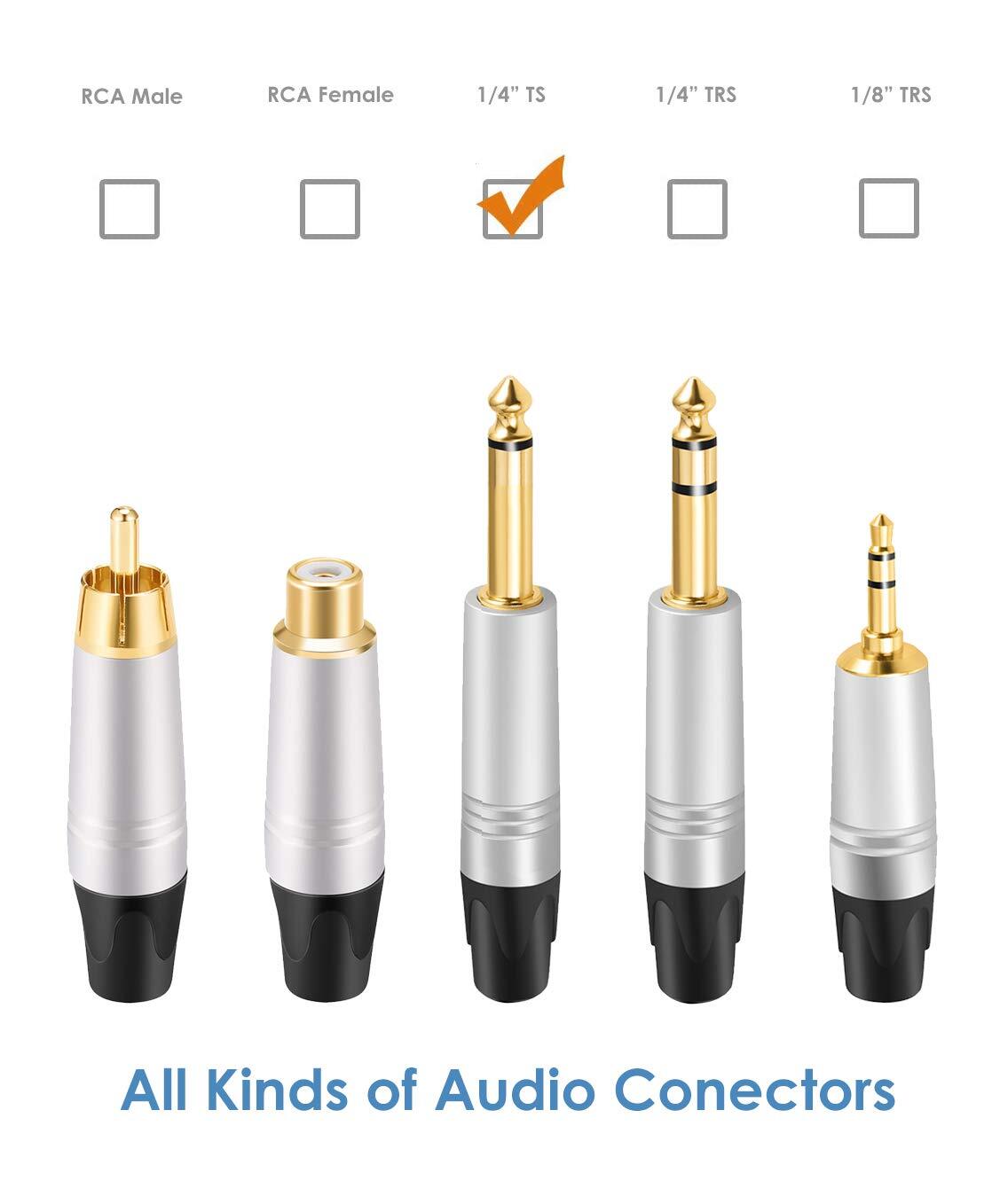 1/4 inch Mono Plugs, 6.35mm TS Solder Type DIY Audio Connector, Heavy Duty Qu...