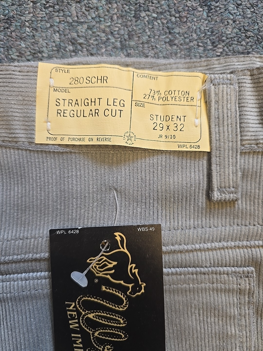 как выглядит 70s Deadstock Wrangler Cordaroy Boys Vintage Jeans Pants Sz 9/10 Slim Kids Gray фото