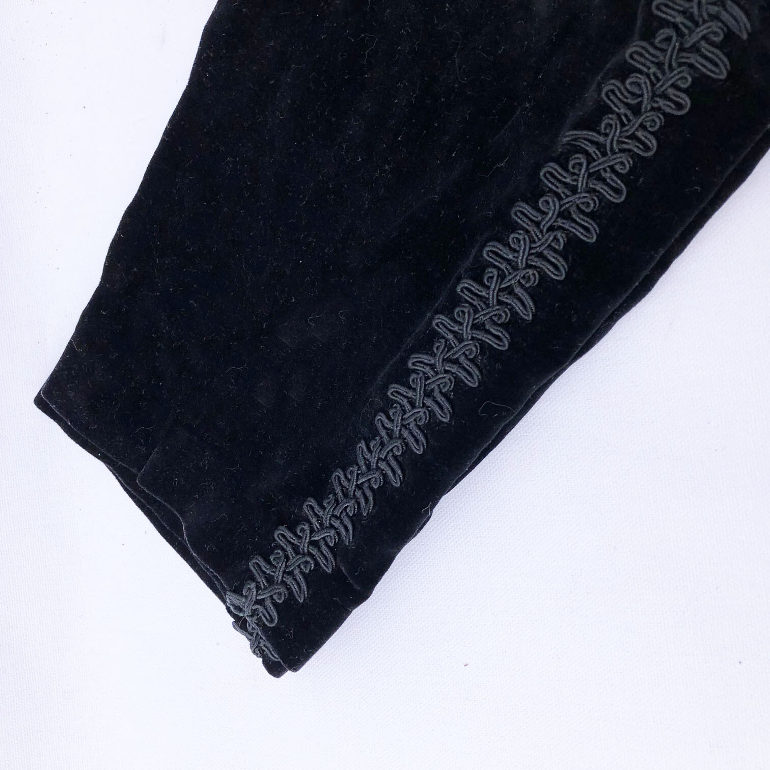 как выглядит Vintage 70s Black Velvet Side trim Flat front Classic Skinny Evening Pants XS фото