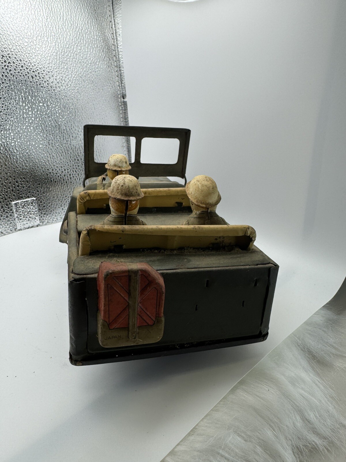 Vintage 1950s US Army Military Jeep Friction Tin Litho Toy Japan