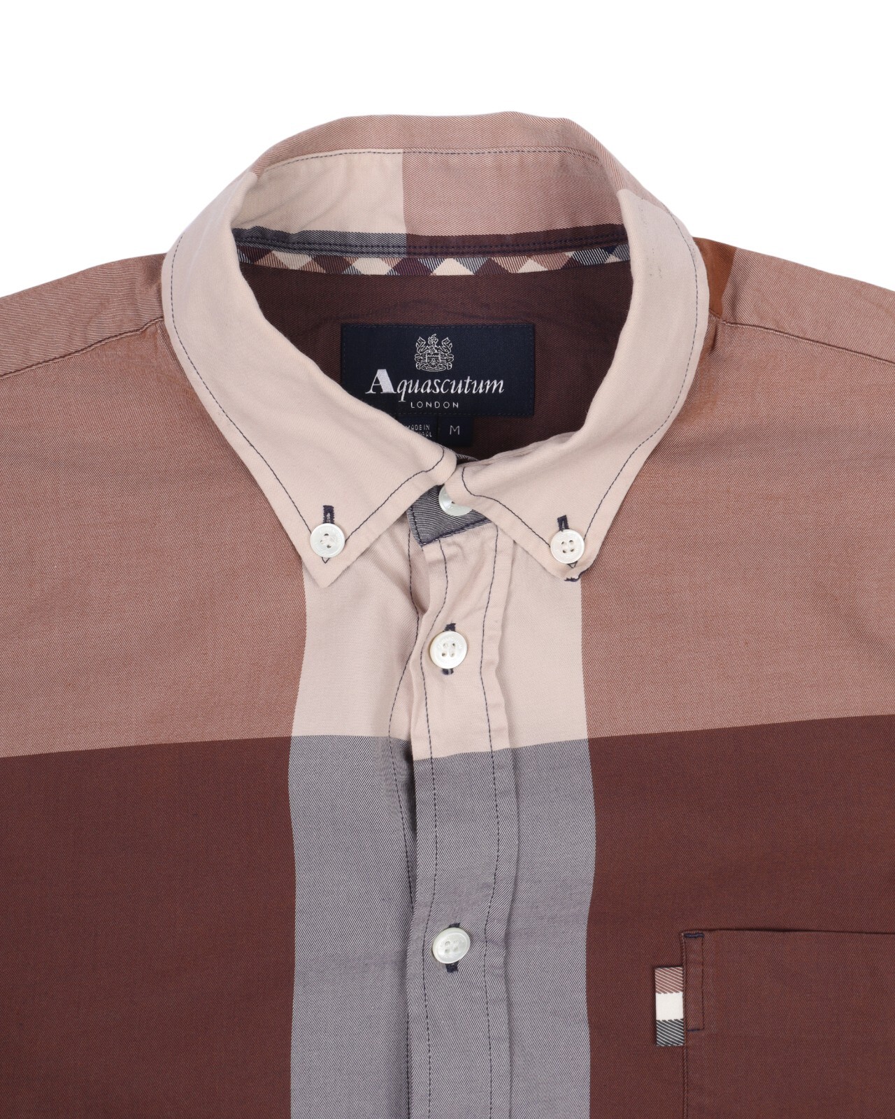 AQUASCUTUM Brown House Check Cotton Shirt Size M
