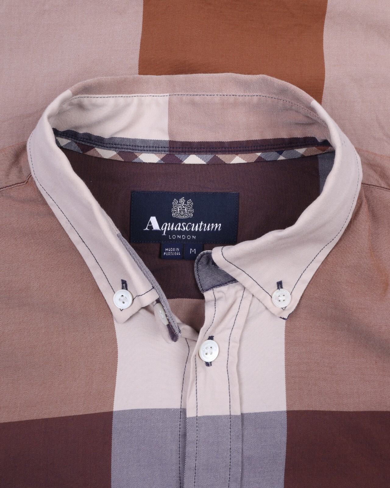 как выглядит AQUASCUTUM Brown House Check Cotton Shirt Size M фото