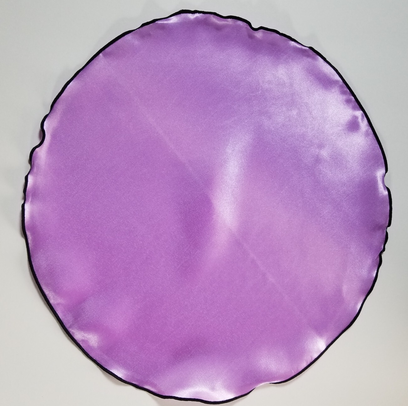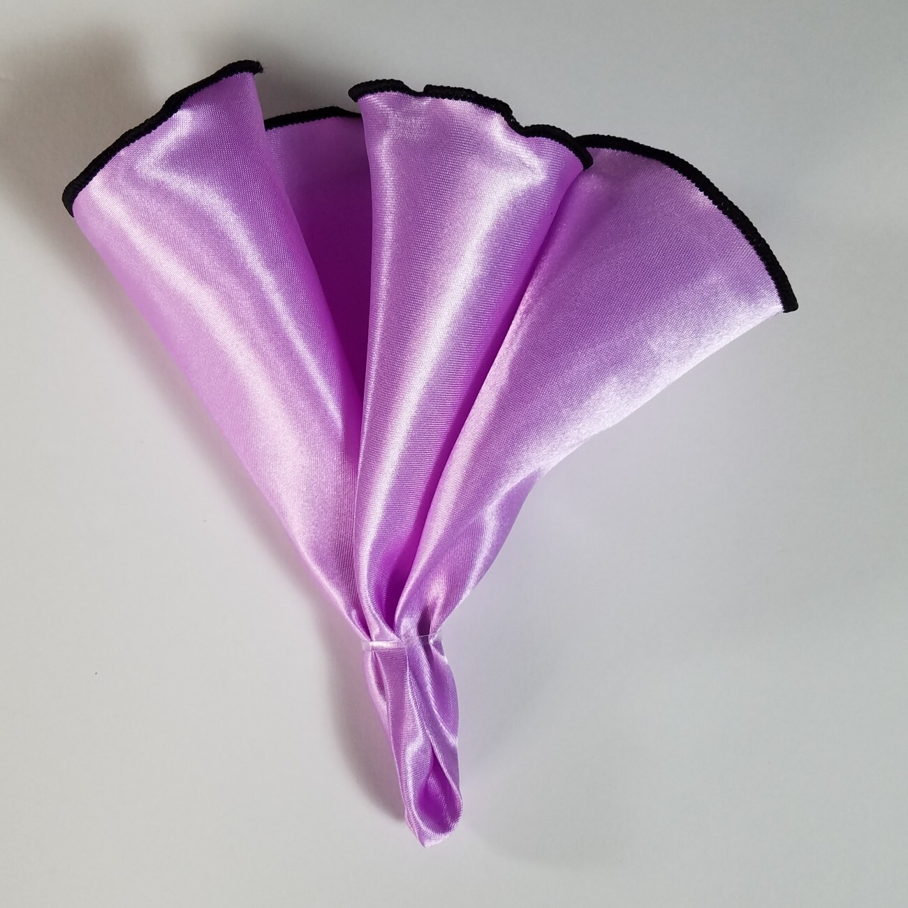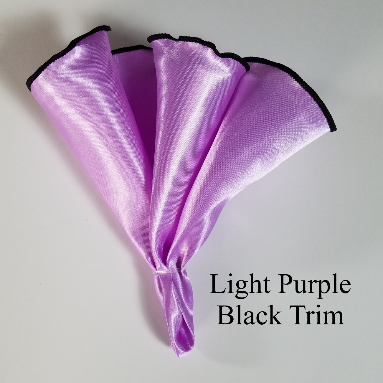 NEW - Men's 2-in-1 Pouf Round Pocket Square - Light Purple Satin with Black Trim