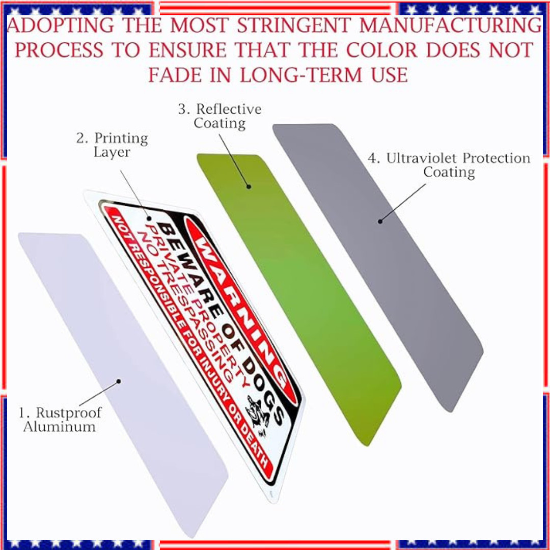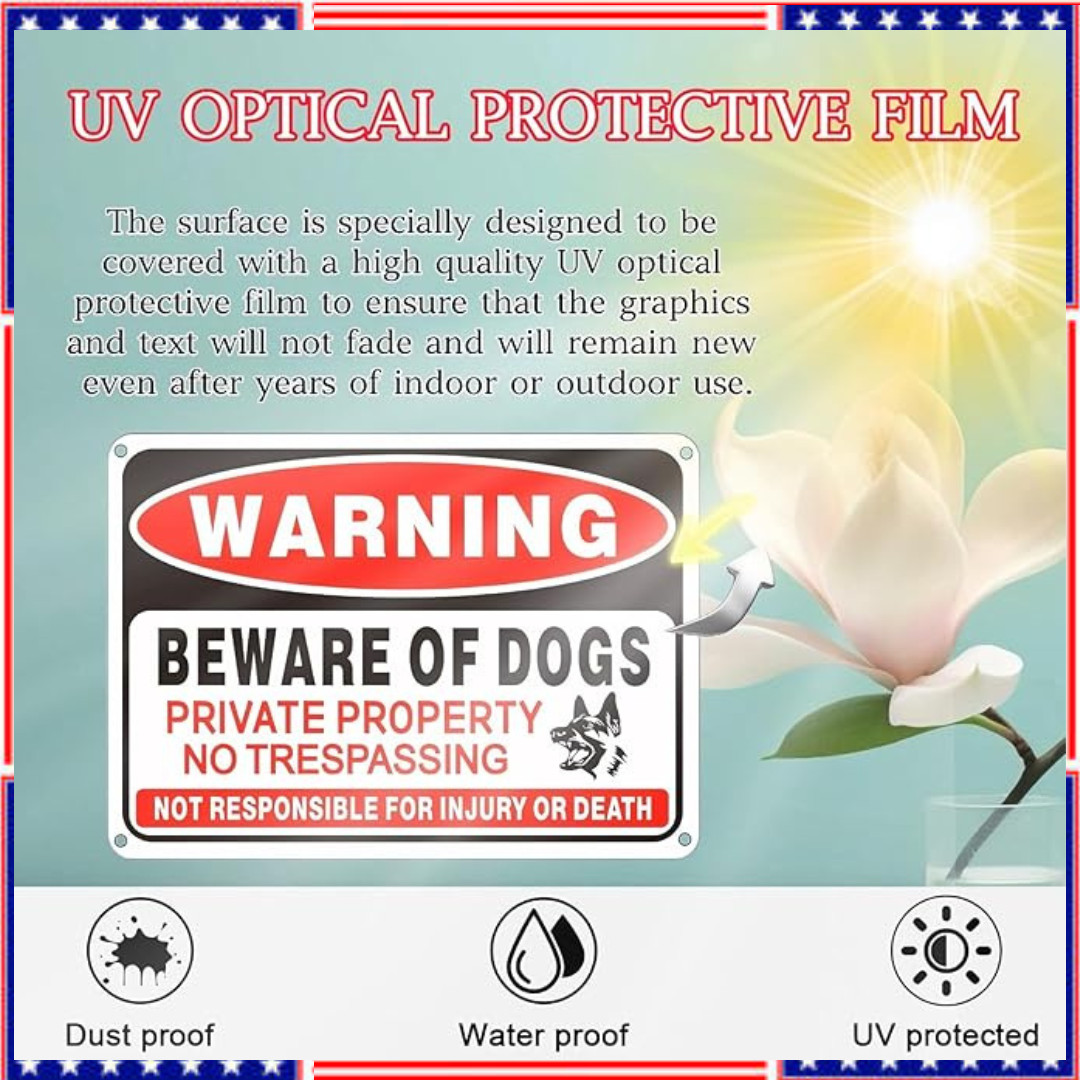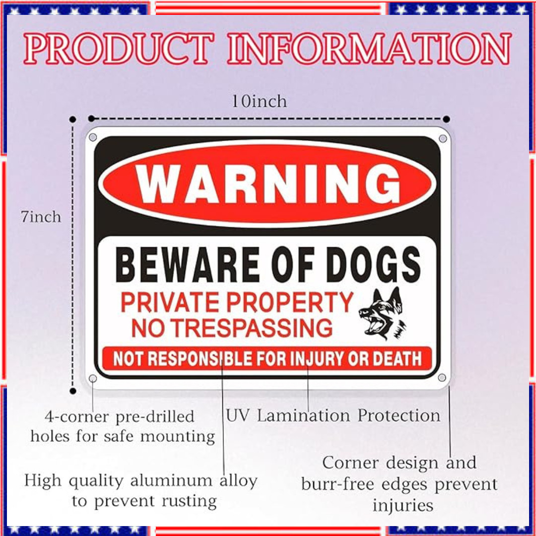 4 Pack Beware of Dog Sign,10x7 inch High Reflective Beware of Dog Sign for Fence