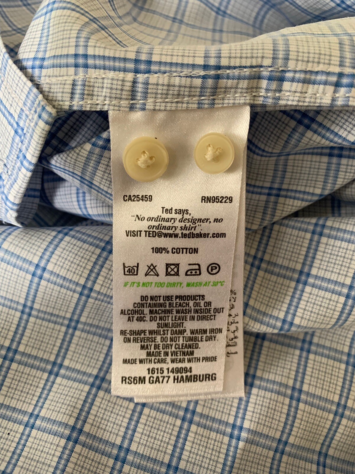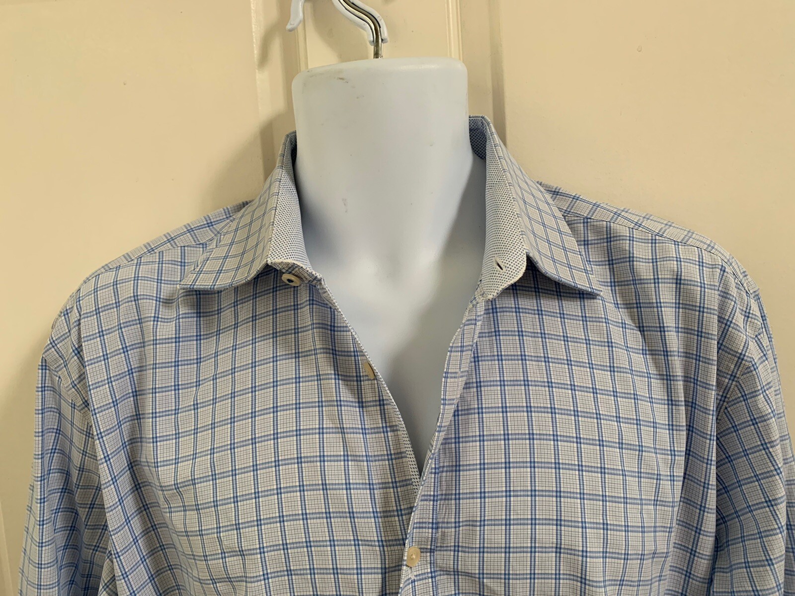 как выглядит Ted Baker Endurance Mens Blue Plaid 100 Cotton Button Front Shirt Sz 17 34/35 фото