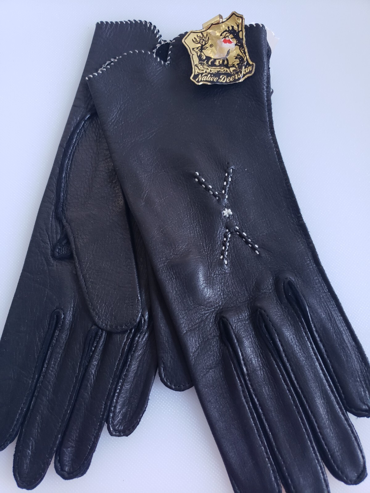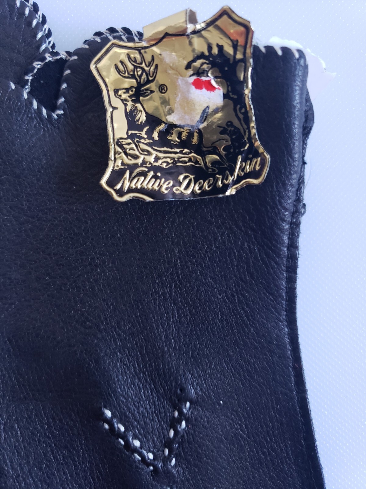 как выглядит Vintage New With Tags CADET Native Deerskin Womens Black Leather Gloves 7.5 фото