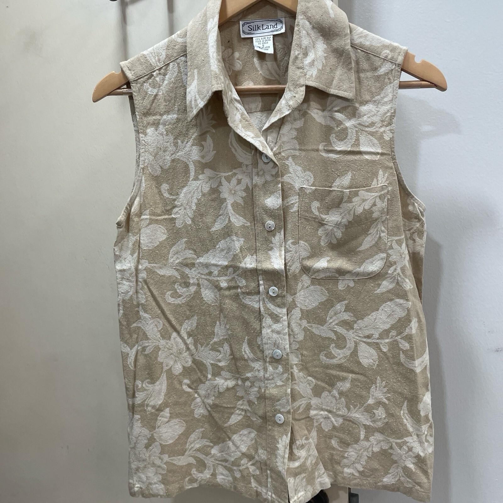 как выглядит Vintage Silk tan and cream floral print blouse and skirt set фото
