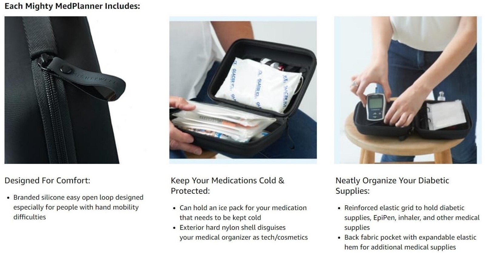 Mighty Well Medicine Planner Case Organizer Diabetic Supplies Pills Black Travel
