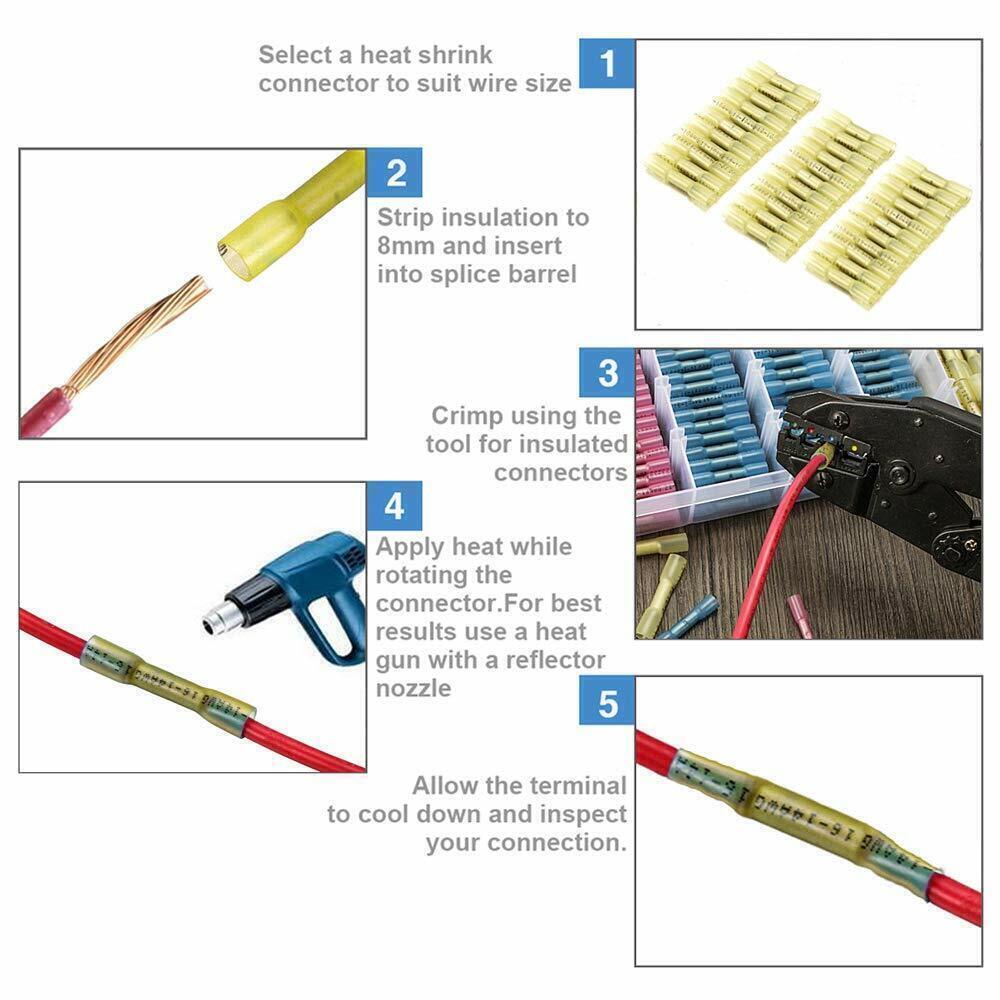 US Yellow Heat Shrink Butt Wire Crimp Connectors Terminals 12-10 Gauge AWG 50PCS