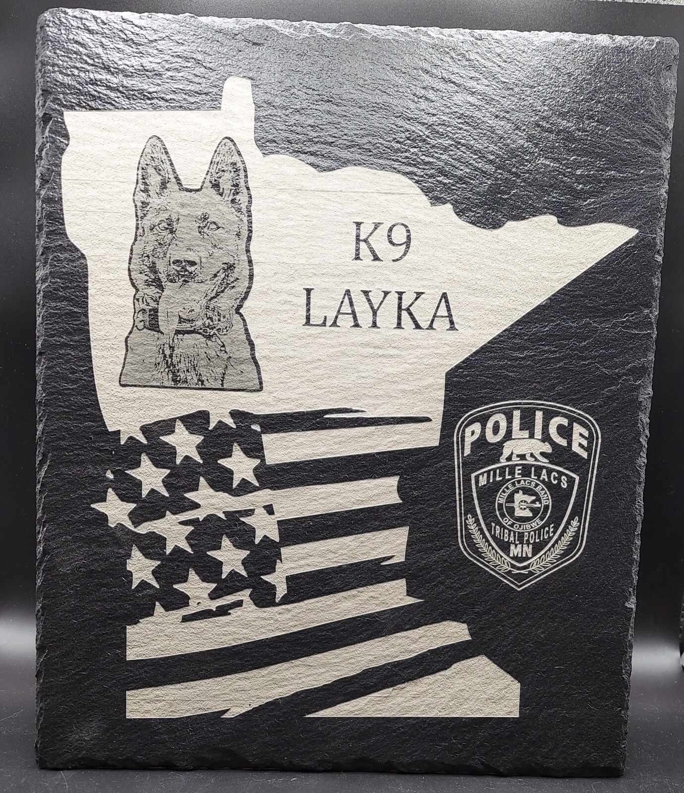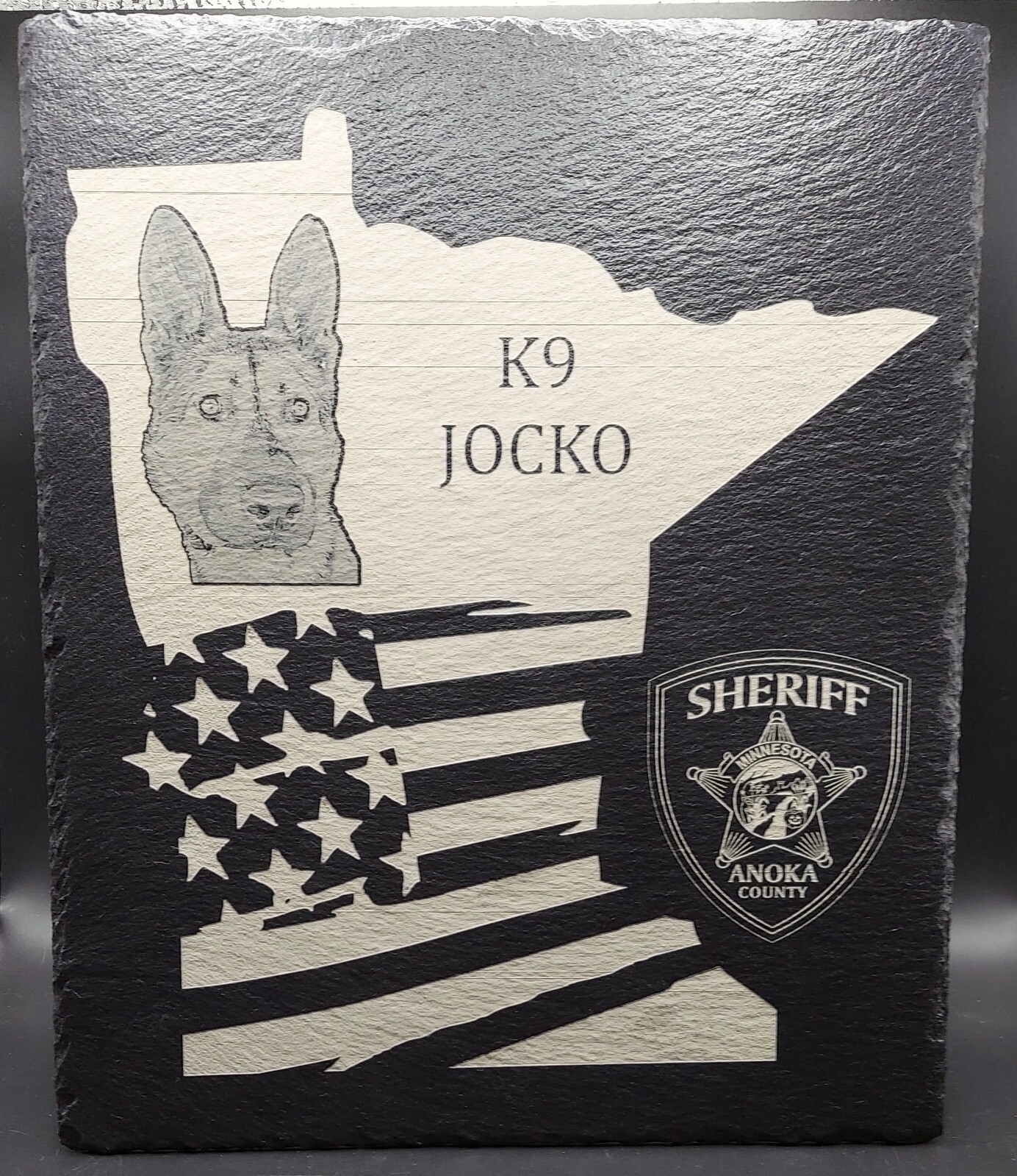 Custom Police K9 Law Enforcement laser engraved slate 12x10 plaque - Minnesota