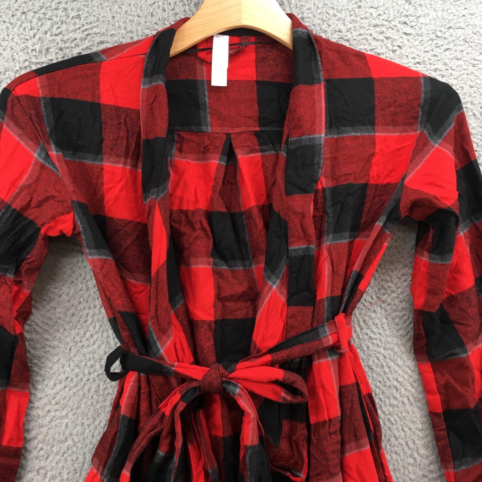 как выглядит Stars Above Perfectly Cozy Flannel Robe Womens XS/S Red Plaid Long Sleeve NEW фото