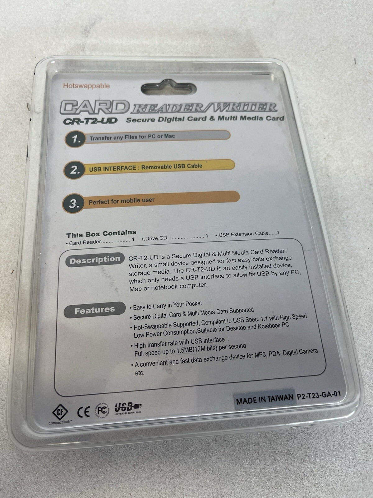 как выглядит NEW Secure Digital Card Reader Writer USB High Speed for PC MAC Windows CR-T2-UD фото