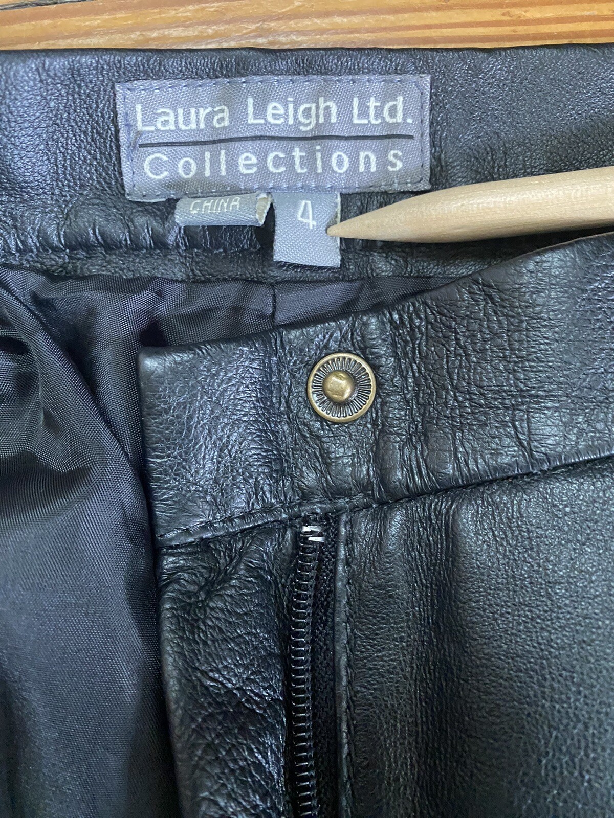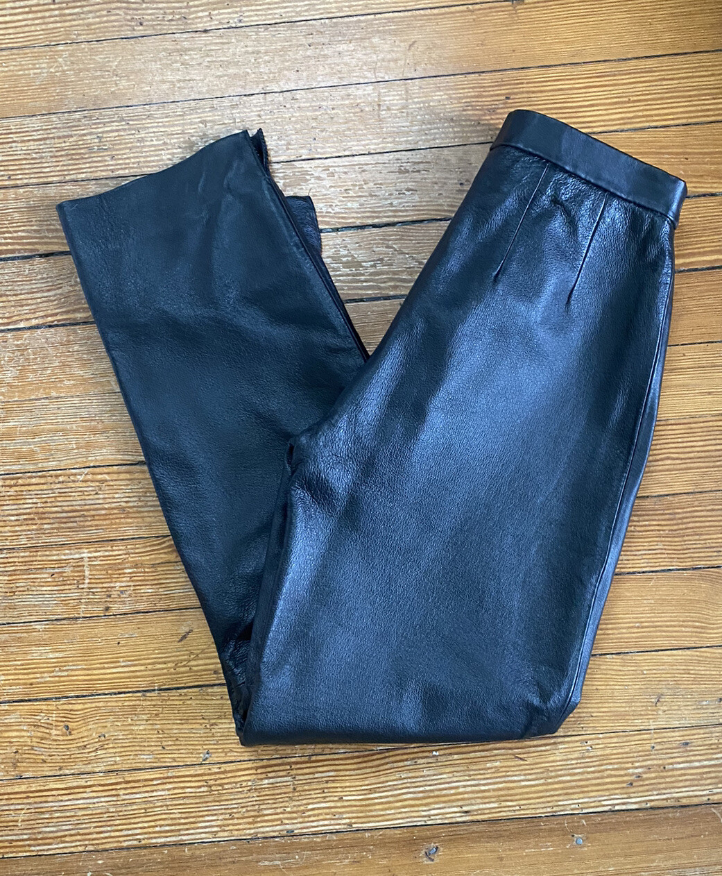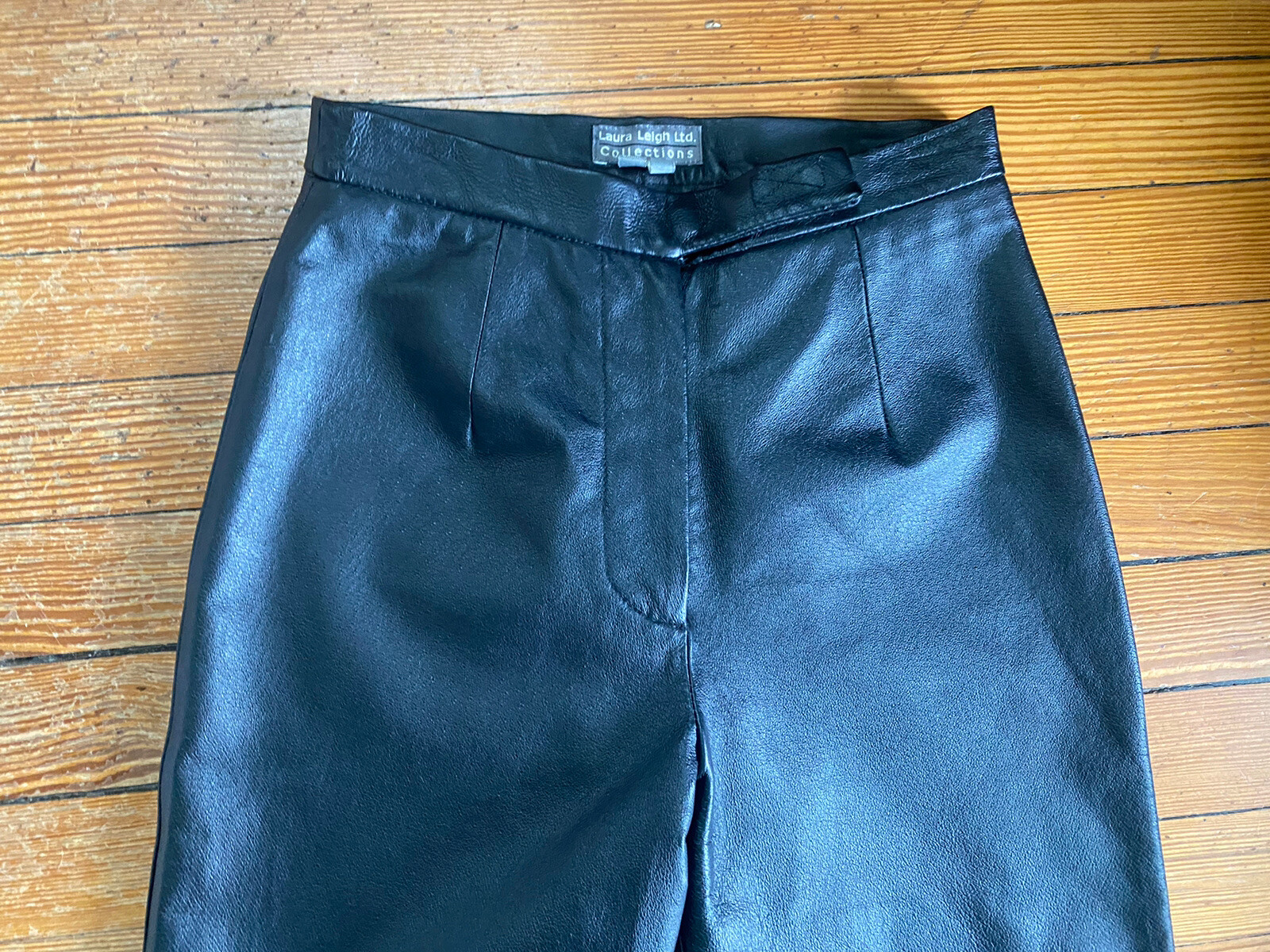 как выглядит Black Leather Pants sz 4 VINTAGE Laura Leigh Ltd, Lined, High Waist, 80s 90s фото