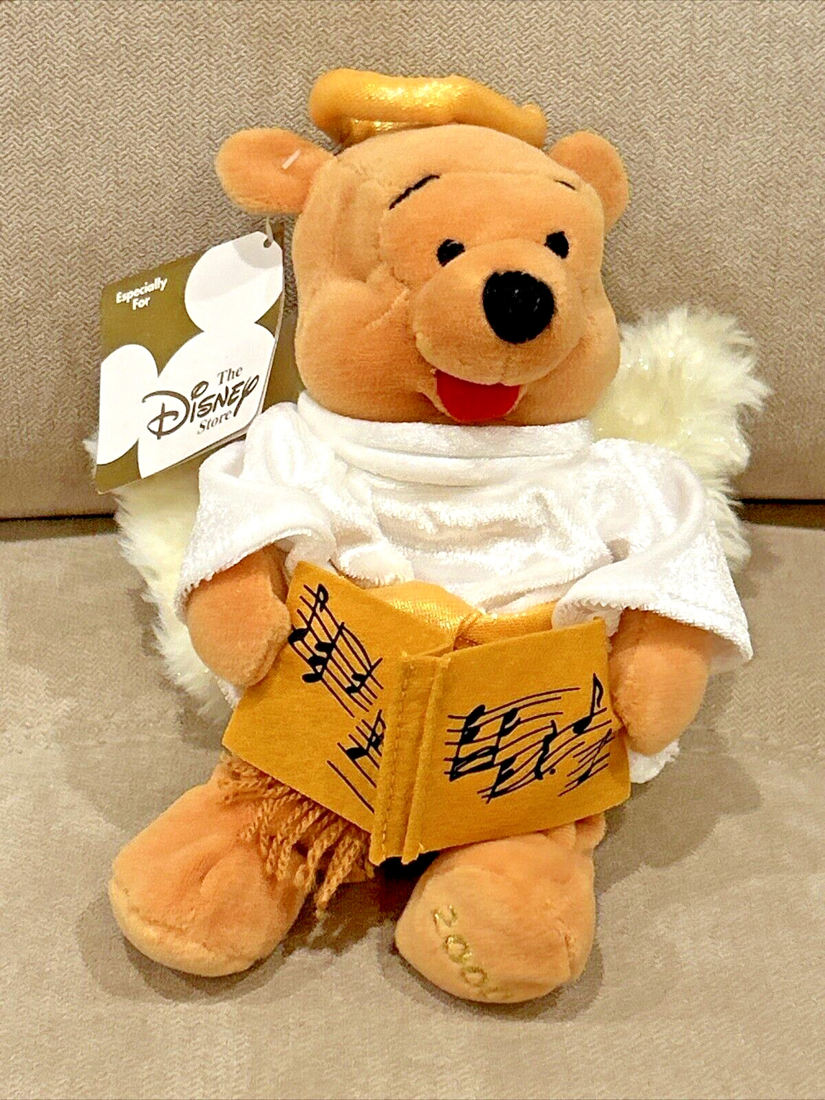Disney Store Winnie the Pooh Choir Angel Wings Halo Mini Bean Bag 8" Plush