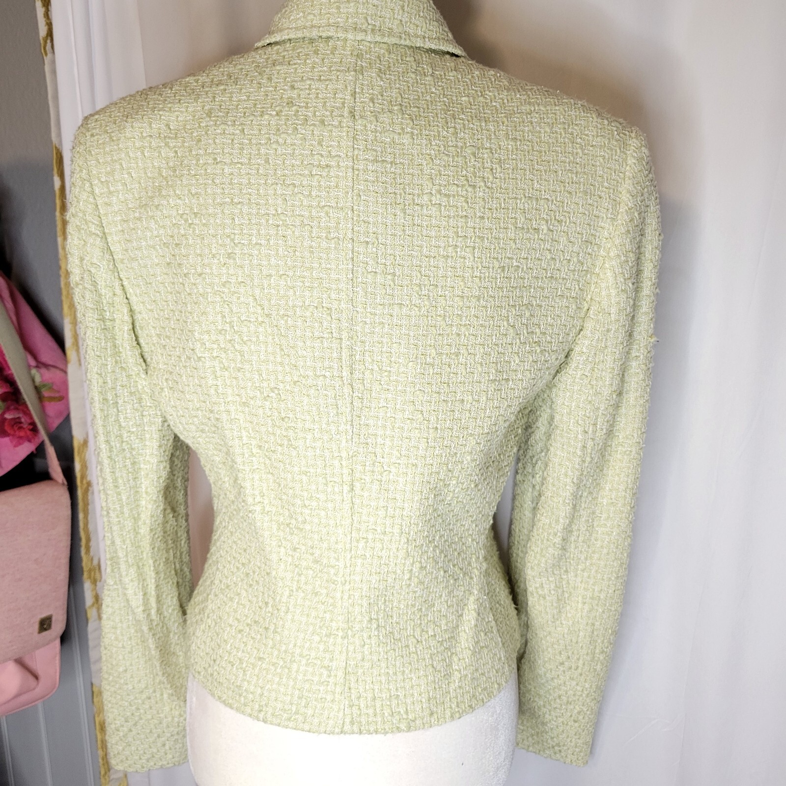 как выглядит NEW ANN TAYLOR NEUTRAL GREEN TWEED NEWBURY BLAZER SZ 2 фото