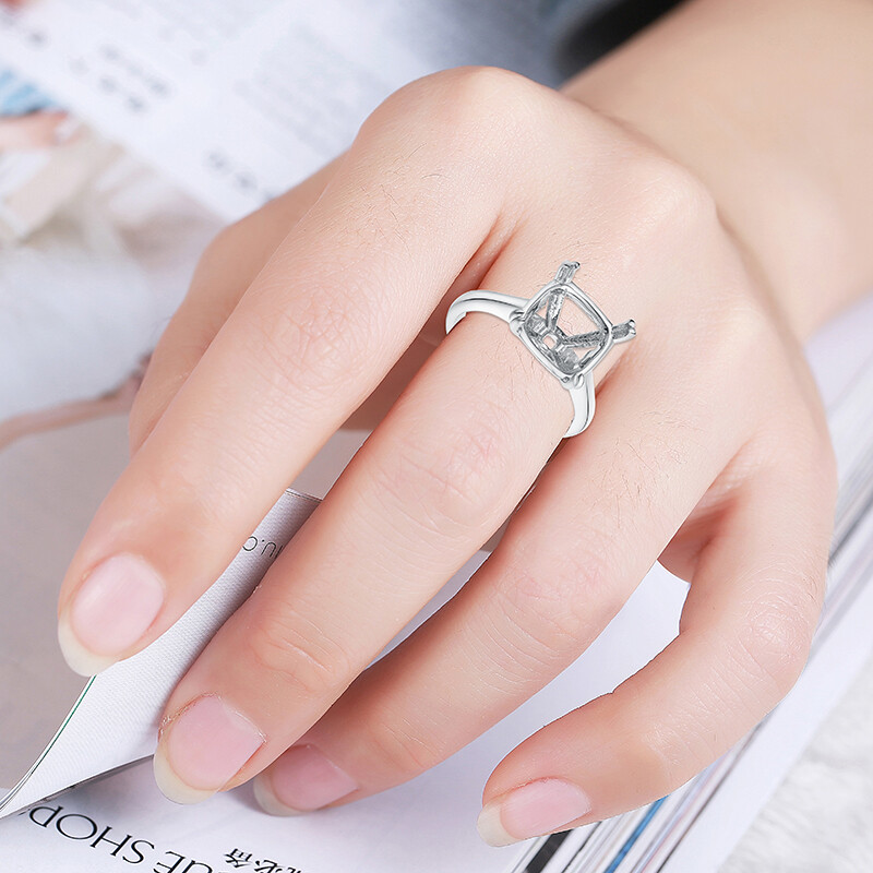 как выглядит Cushion/Octagon Shape 10x10mm Semi Mount Fine Ring Sterling Silver 925 Jewelry фото