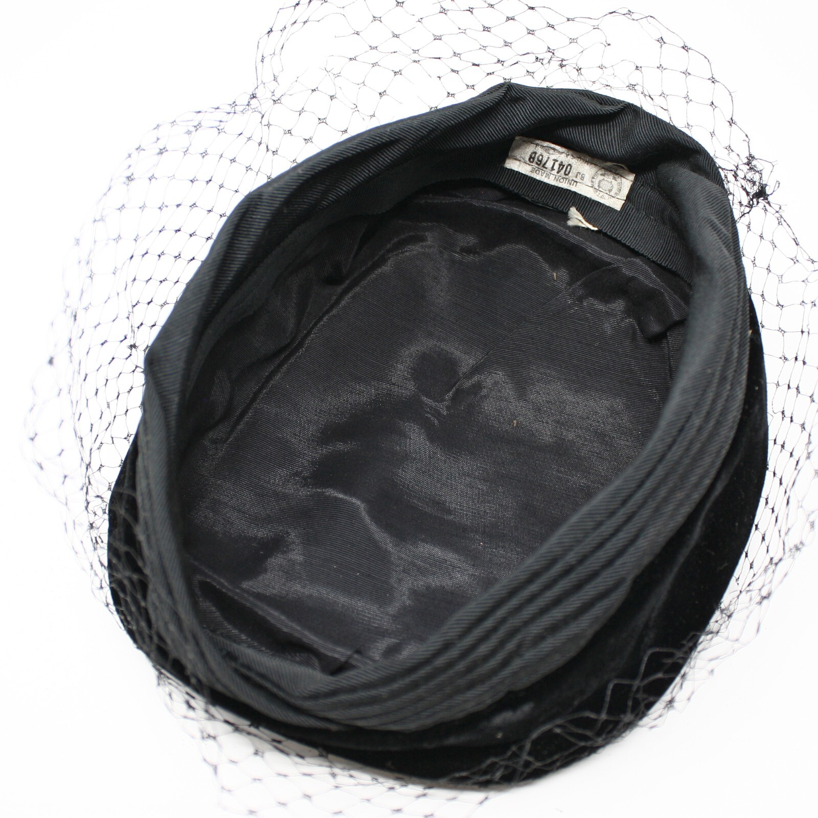 как выглядит Vintage Black Velvet Hat Pillbox Turban Cocktail Style w Veil Union Tag -Hey Viv фото