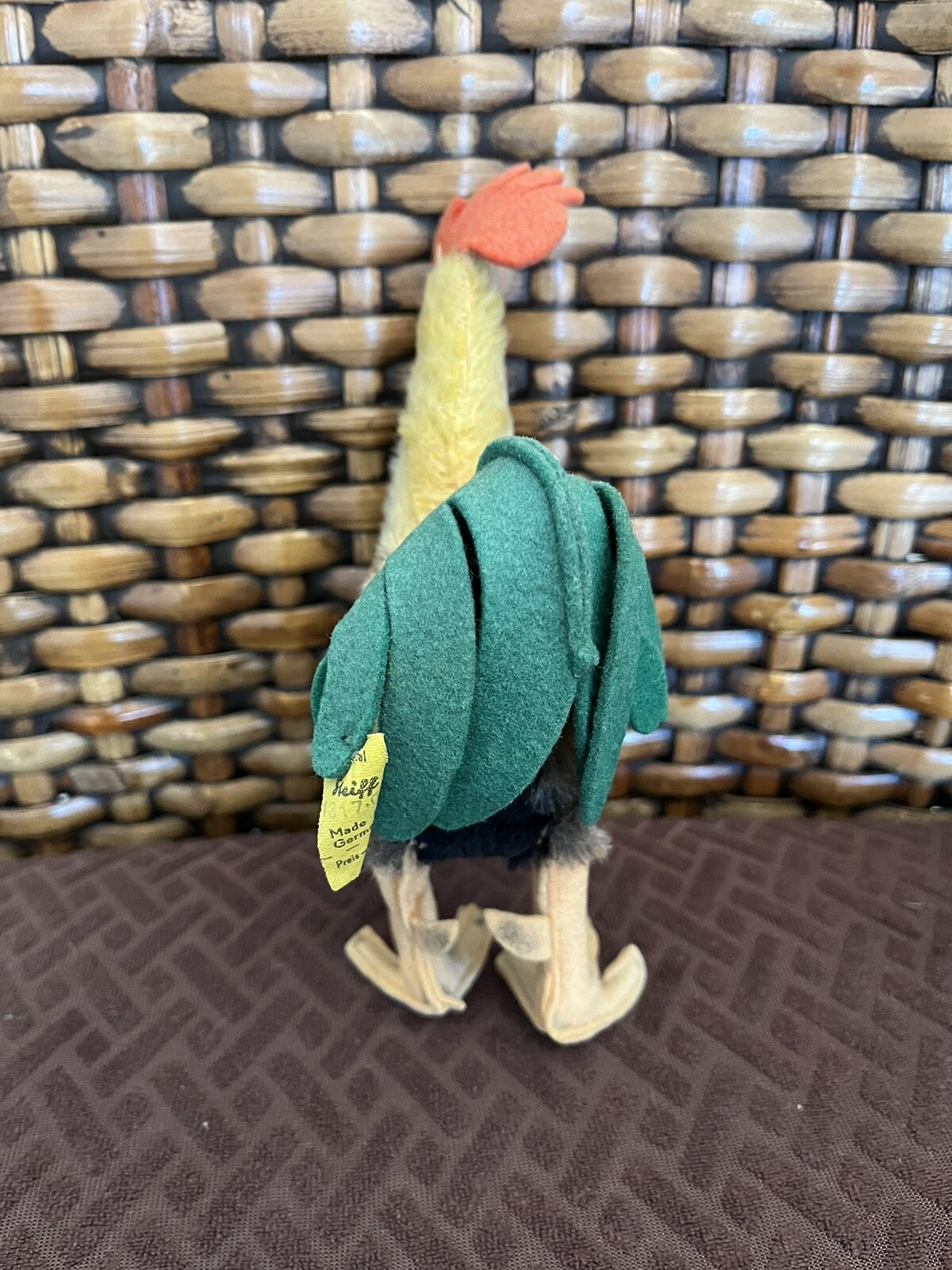 Steiff 1960's 7 Rooster with felt comb and tail, wire legs covered in felt