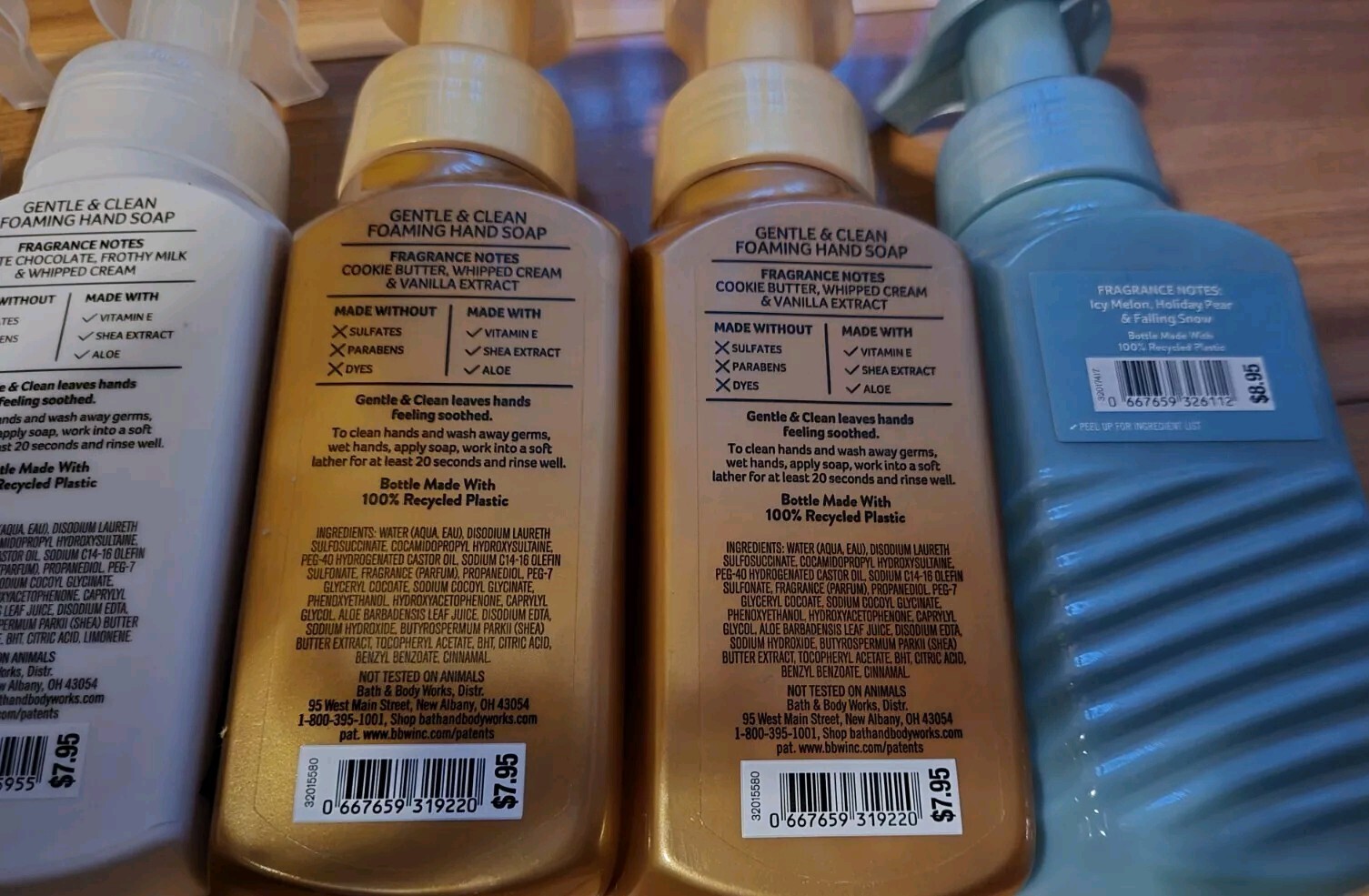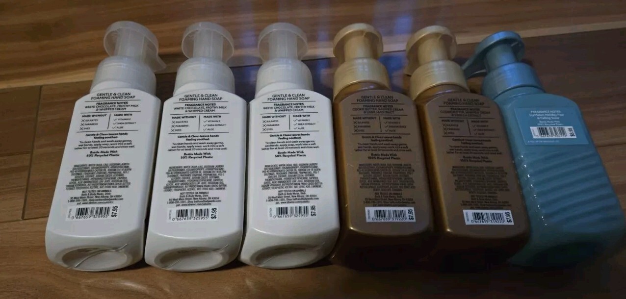 как выглядит lot 6 Bath Body Works foaming hand soap whipped white cocoa cookie butter фото