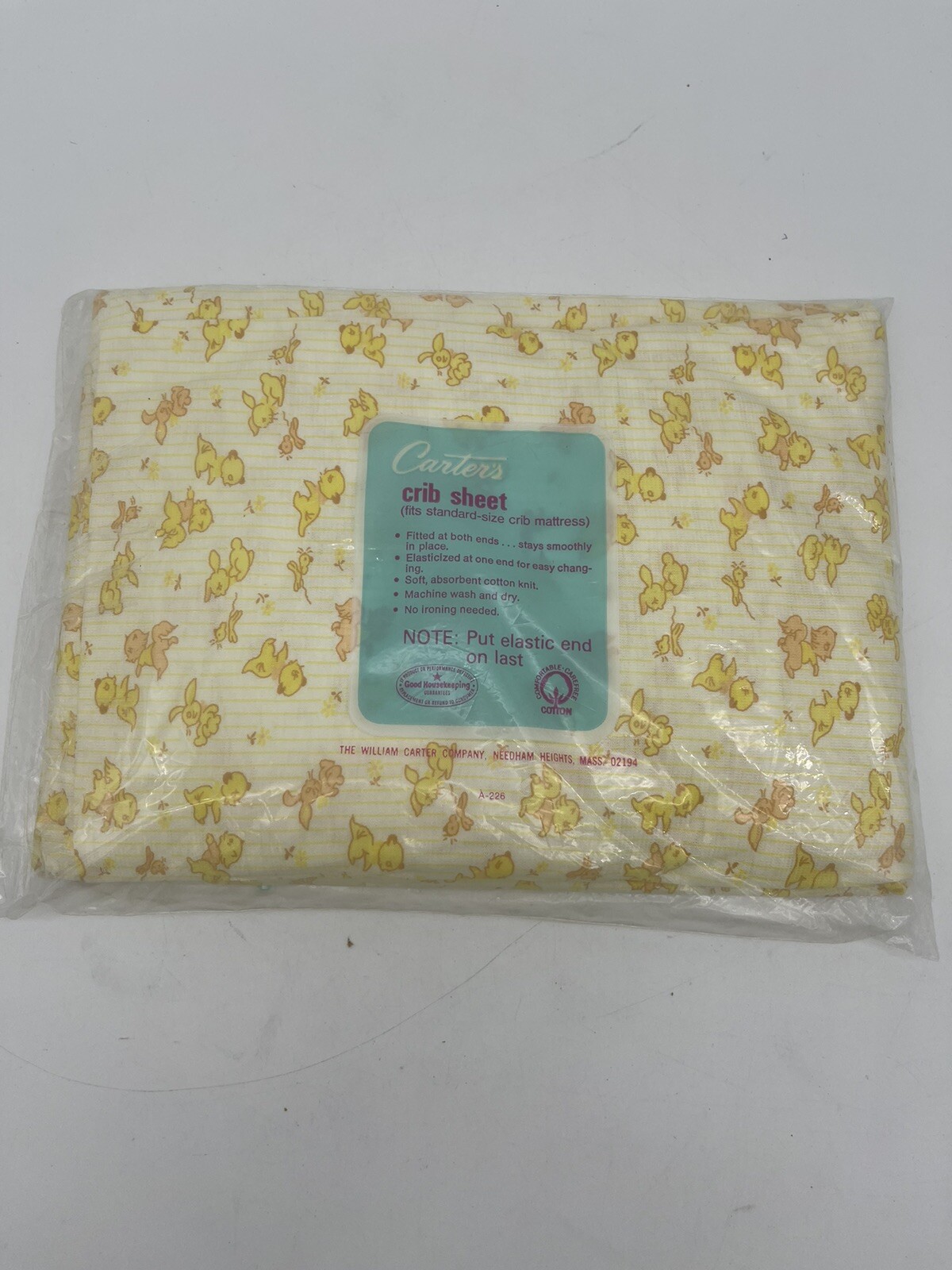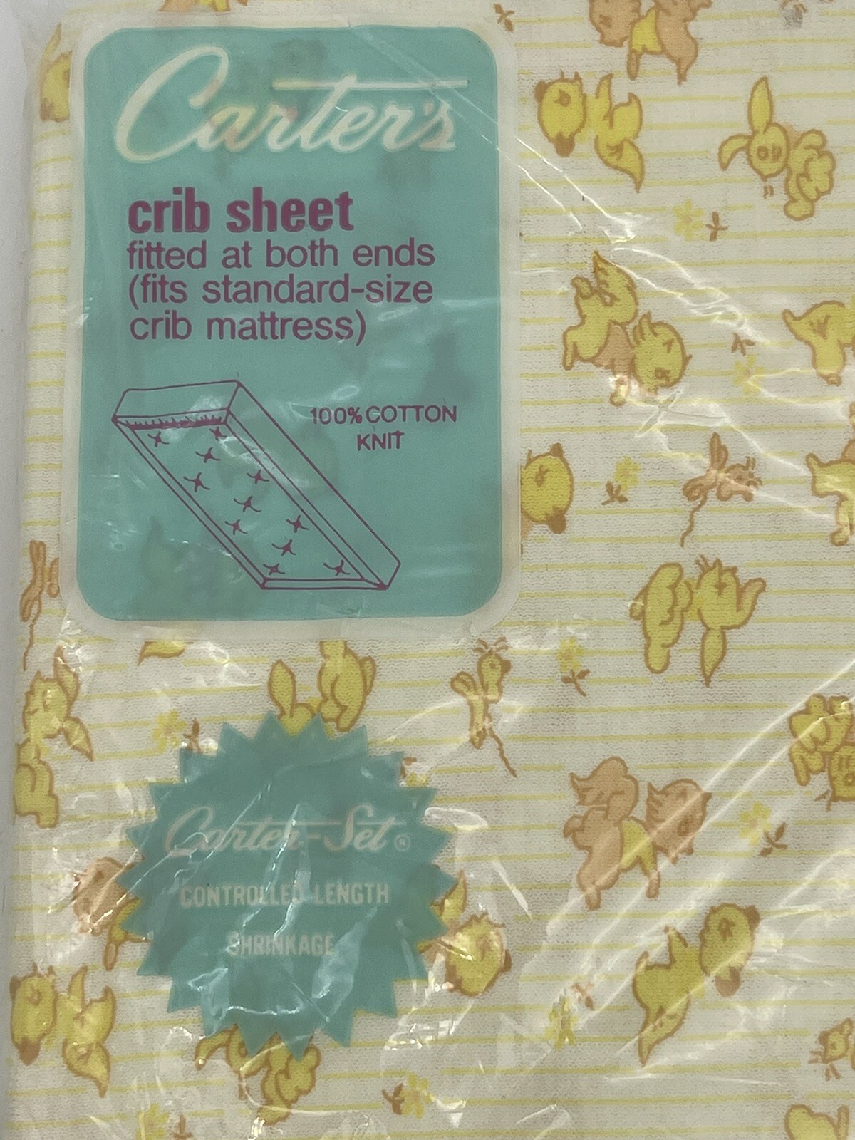 NOS Carters Vintage Fitted Baby Crib Sheets Mid Century Yellow Animals Nursery