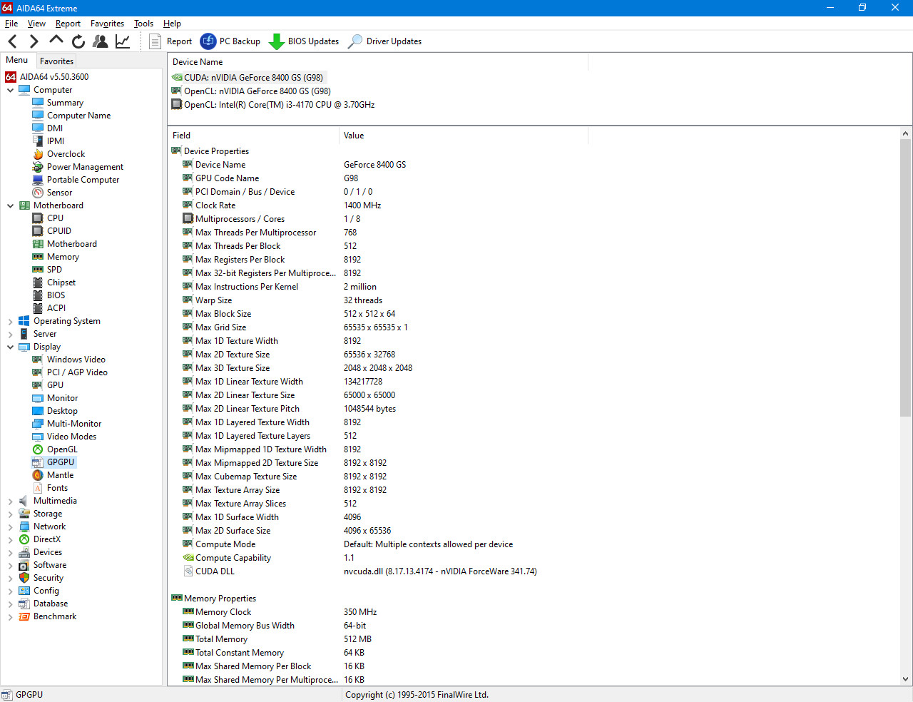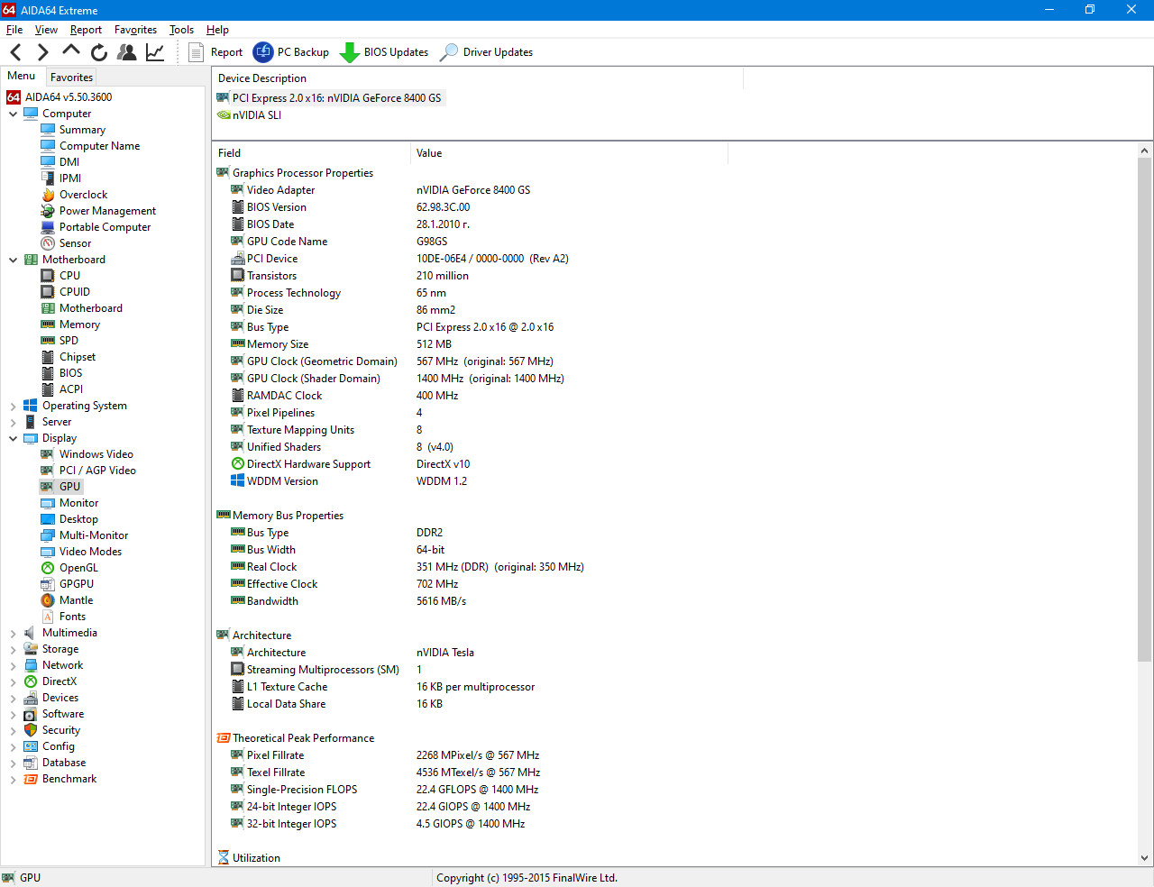 Chipset/GPU Model: NVIDIA GeForce 8400 GS (G98S}