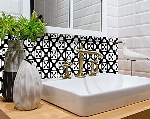 Item Name: HomeRoots Vinyl 8" X 8" Black and White Coli Peel and Stic..
