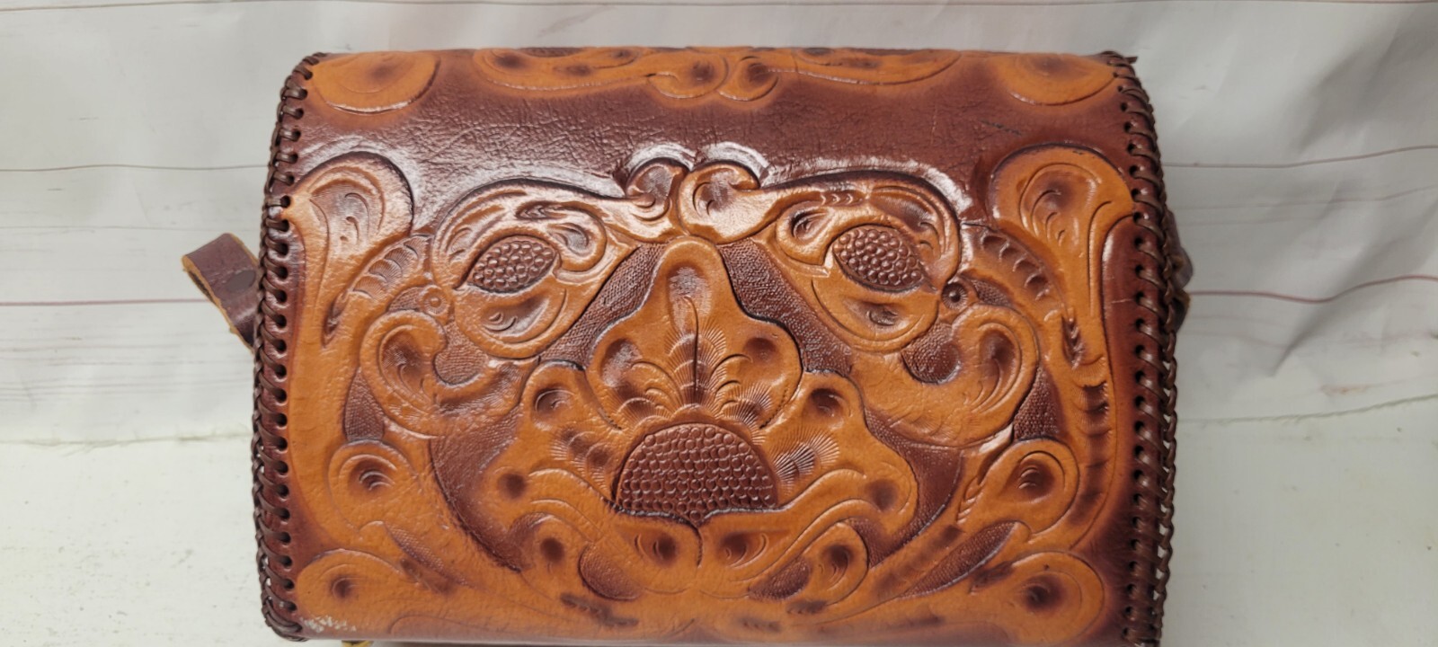 Vintage Hand Tooled Leather Purse Shoulder Bag Mid Century Western Floral