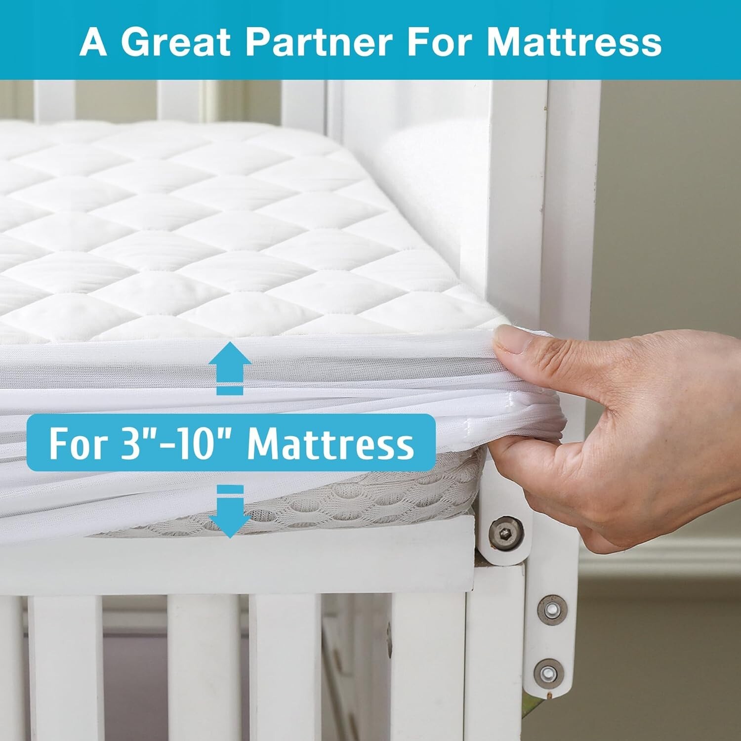 Waterproof Crib Mattress Protector, Soft Crib Size Mattress Pad Cover 3-10Inches