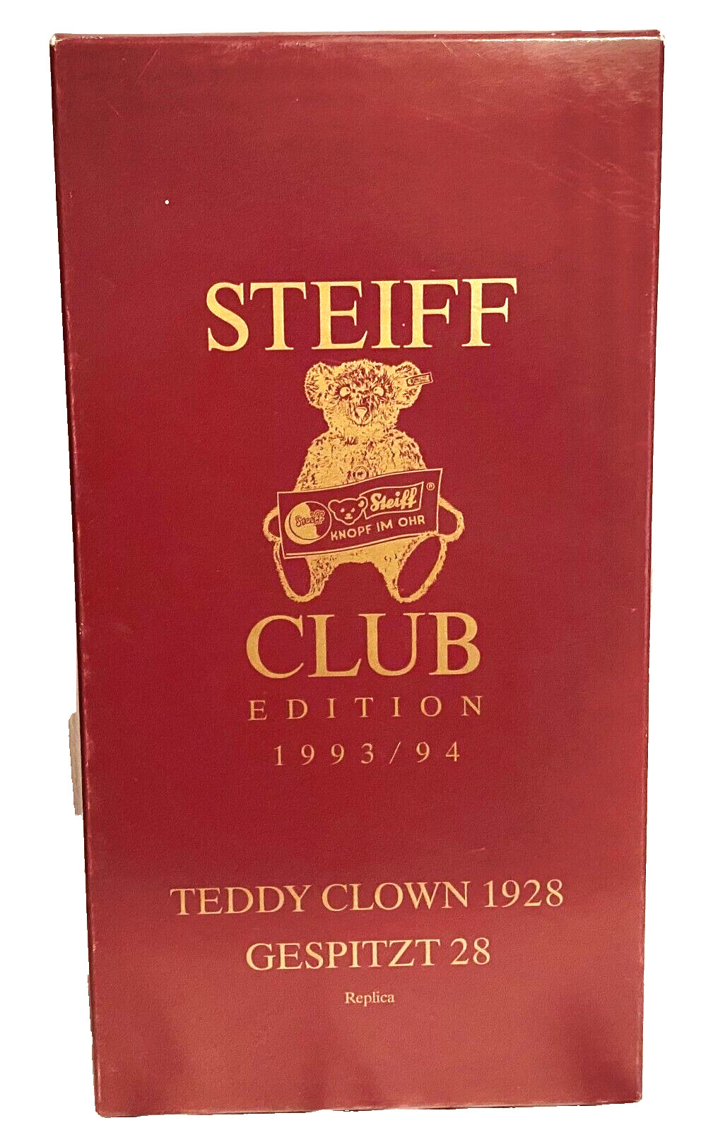1993/94 Steiff Club Teddy Clown 1928 Replica Teddy Bear In Box W/Certificate
