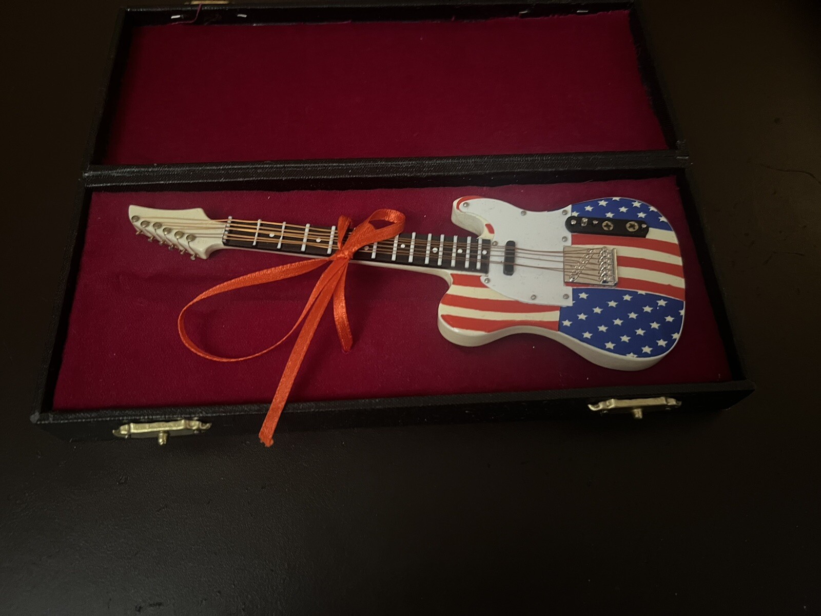 Mini Americana Guitar w/velvet case. Guitar is 7 X 2.25 Case Is 8 X 6.5 .