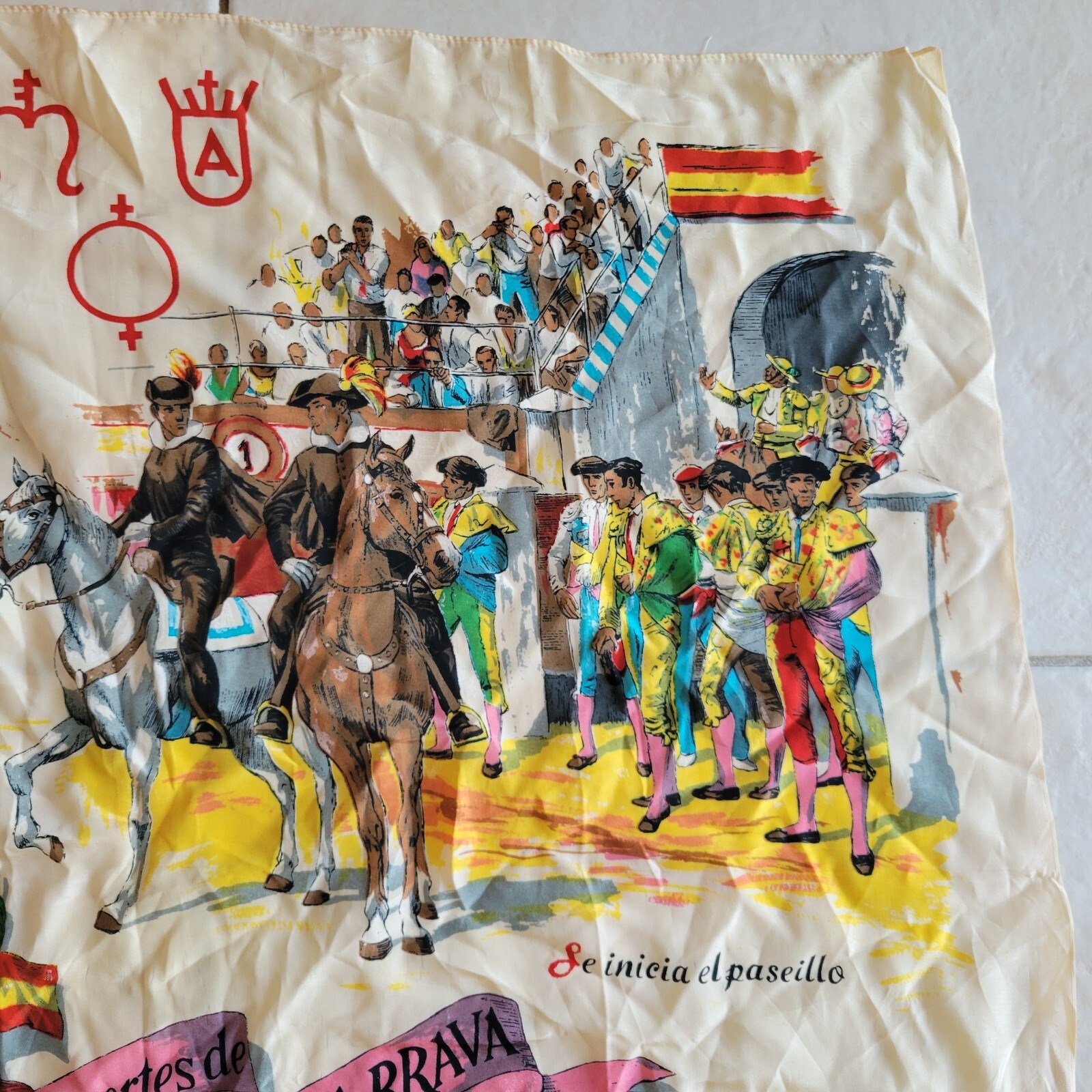 Vintage Bullfight Souvenir Spanish Barcelona Scarf Diversa Suertes de la FIESTA
