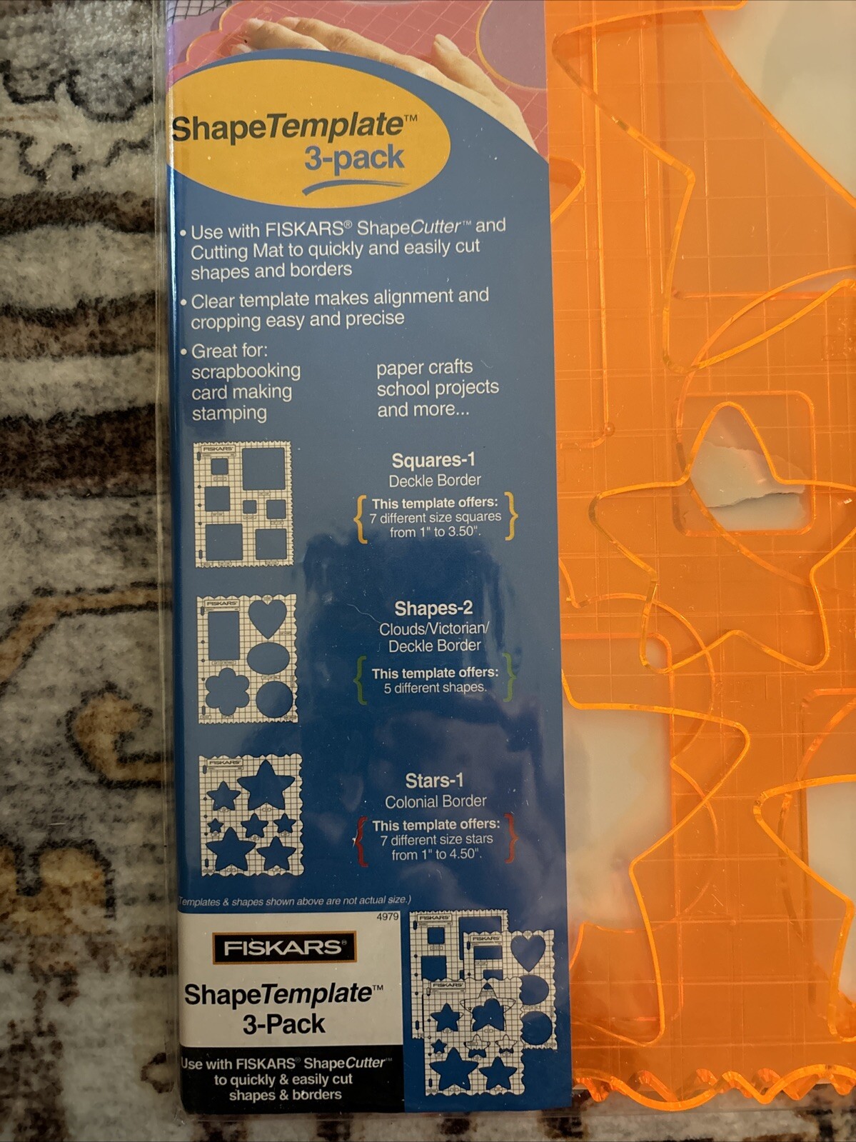 Fiskars Shape Template 3 Pack Stars, Squares, Shapes. 4979 Scrspbook New