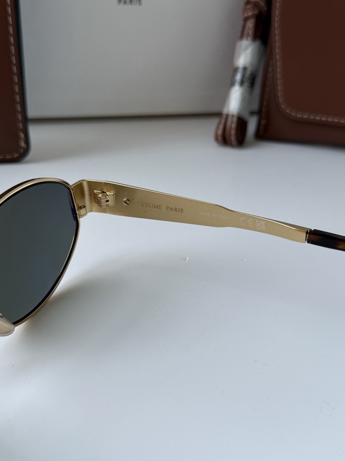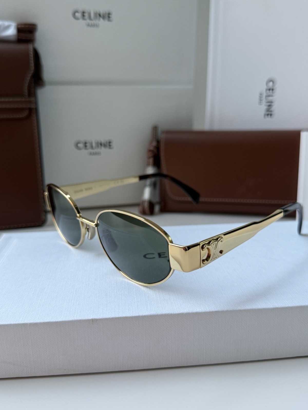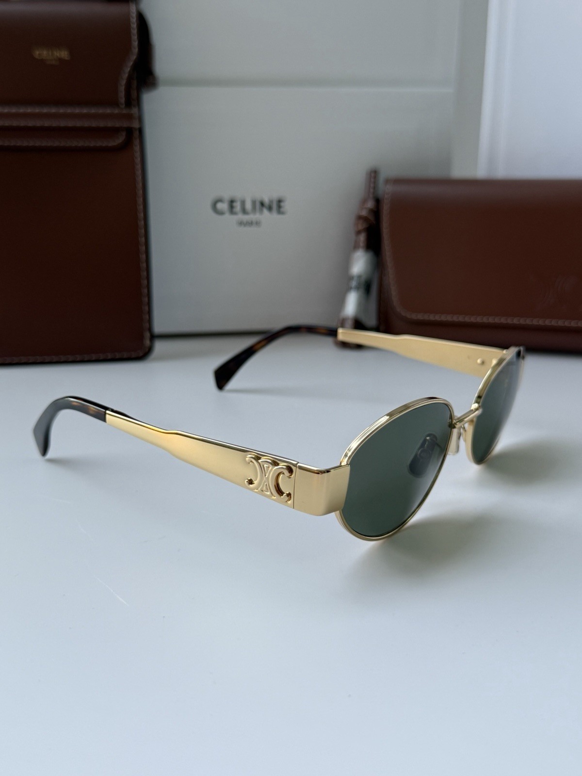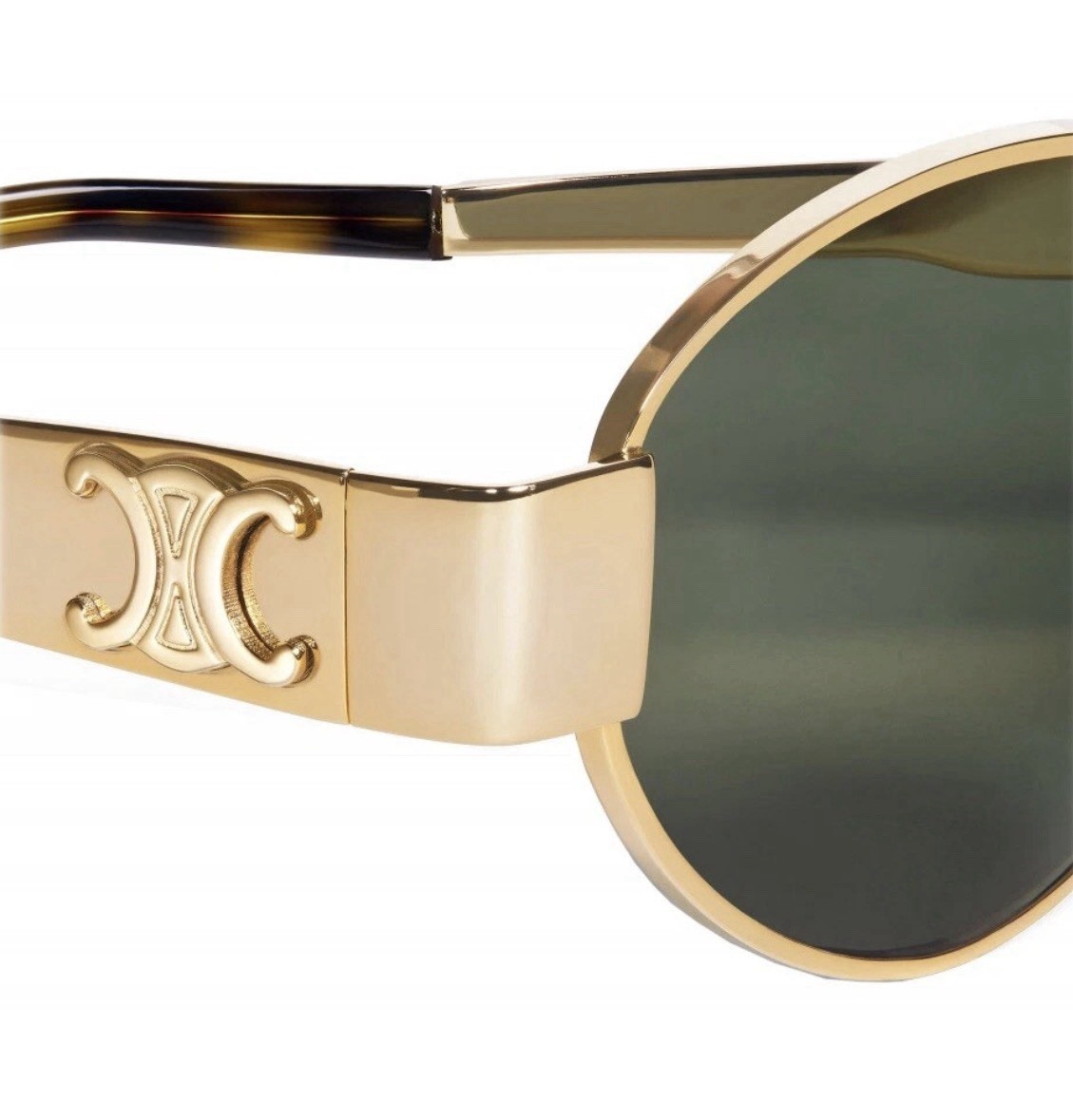 как выглядит Celine CL40235U 30N Triomphe Metal Oval Sunglasses Gold Green Lens AUTHENTIC фото