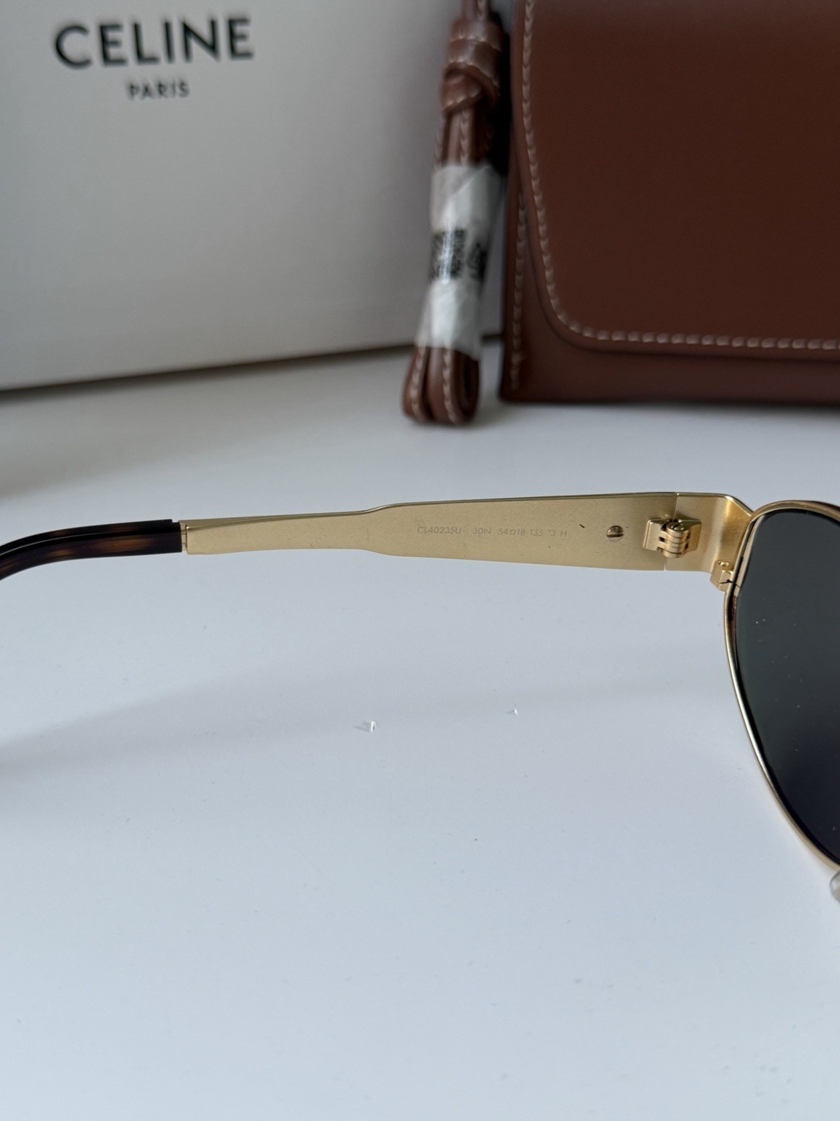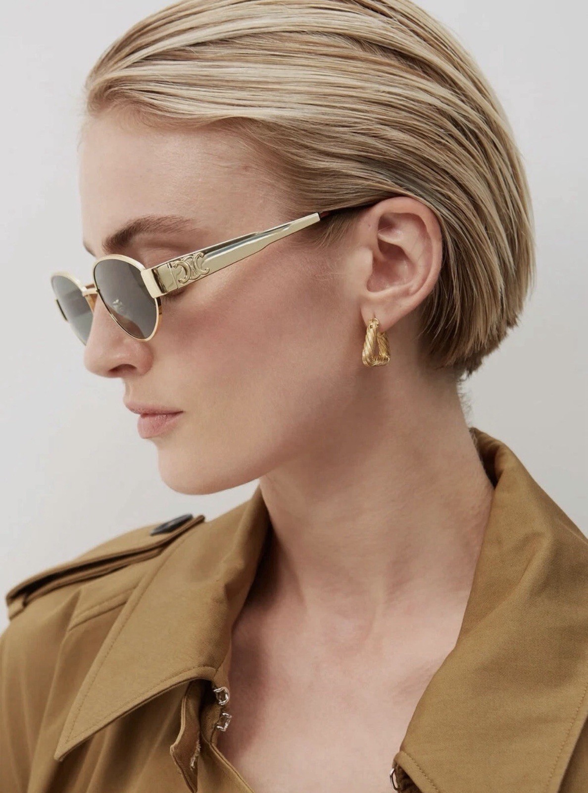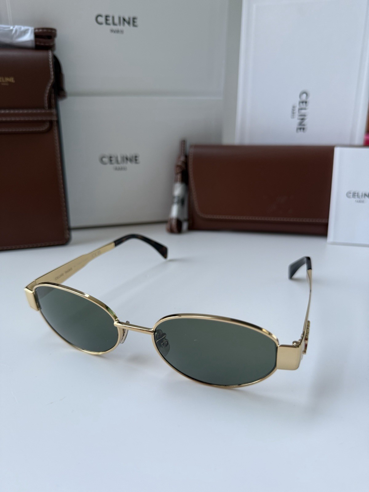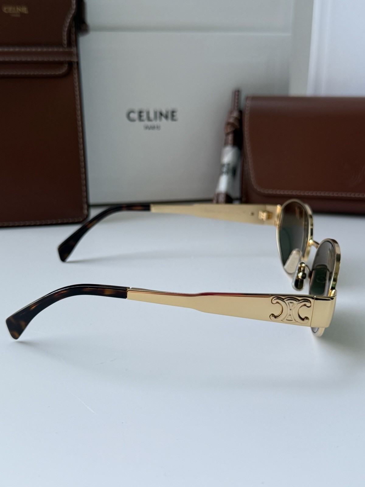 как выглядит Celine CL40235U 30N Triomphe Metal Oval Sunglasses Gold Green Lens AUTHENTIC фото
