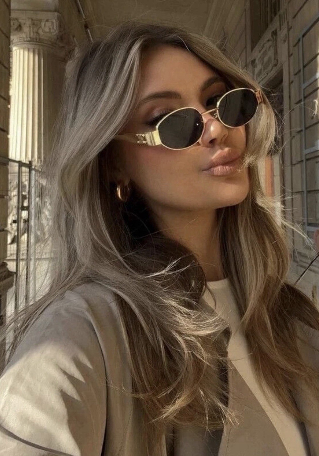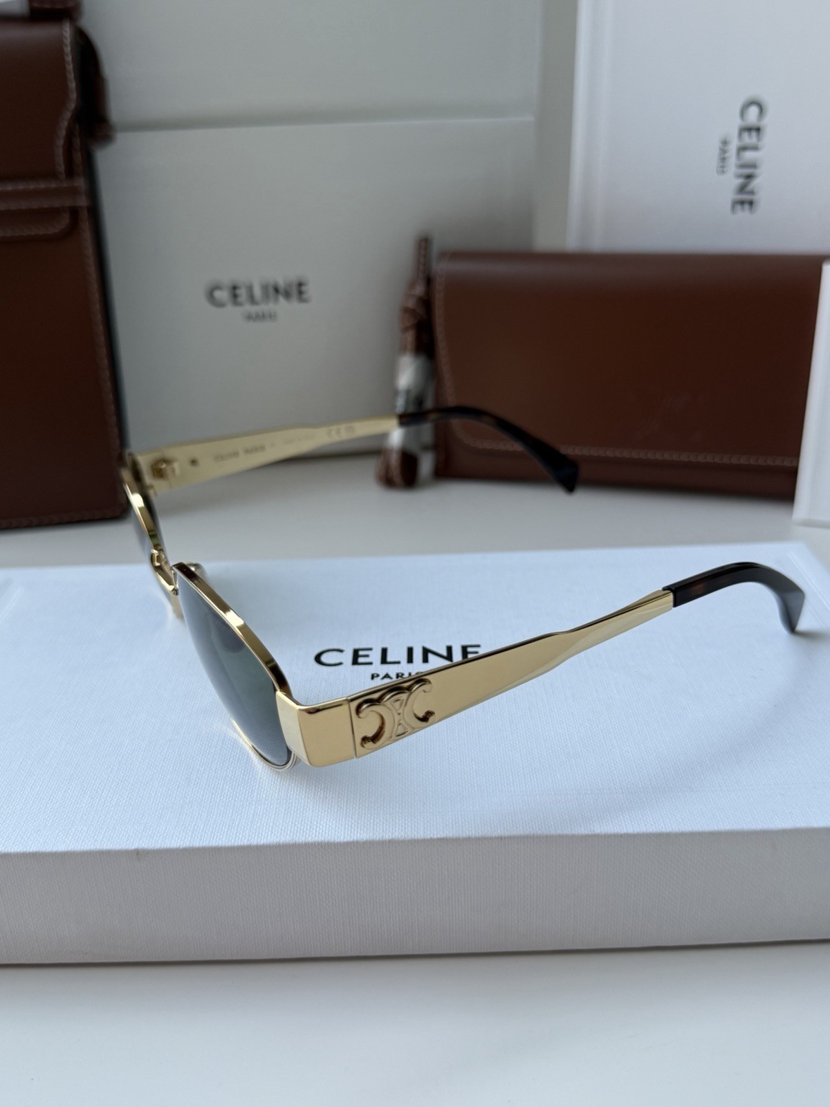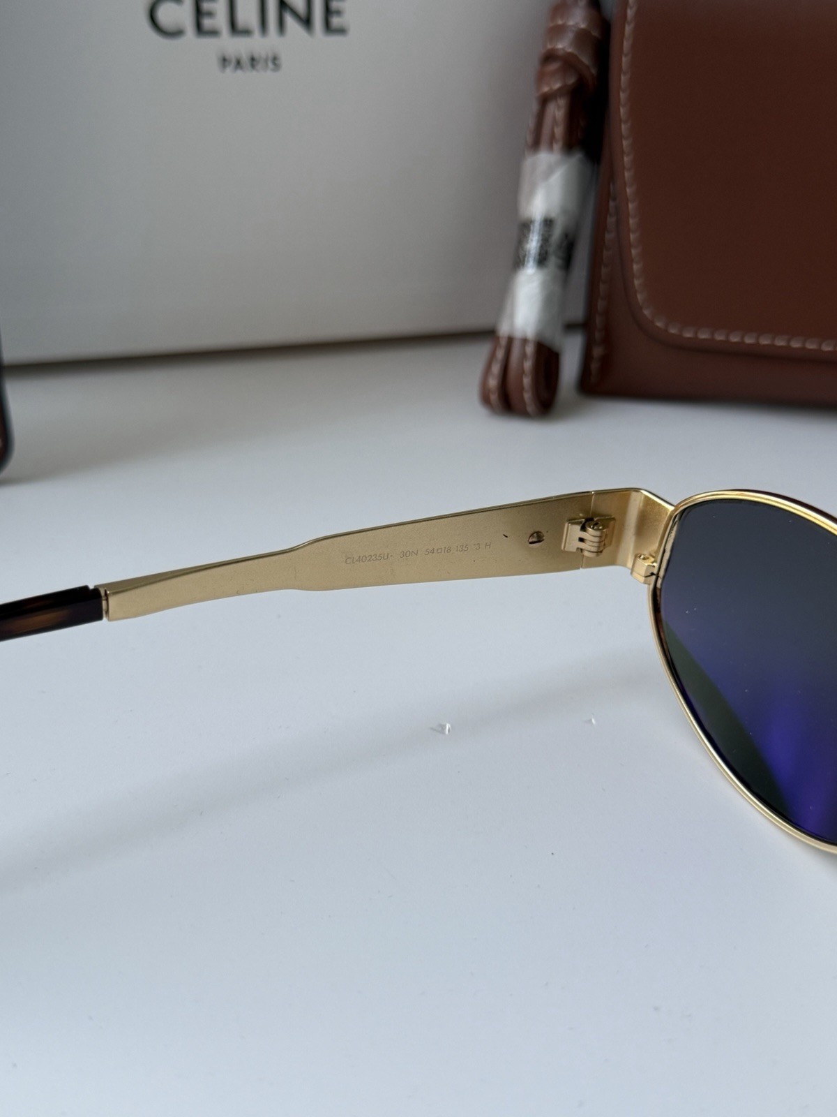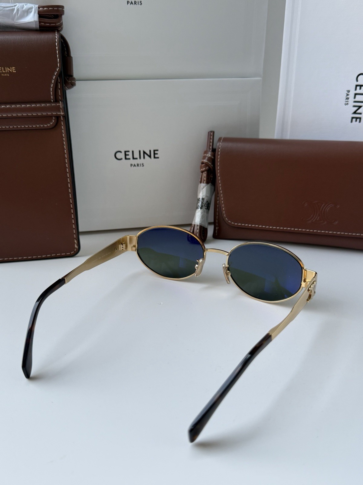 как выглядит Celine CL40235U 30N Triomphe Metal Oval Sunglasses Gold Green Lens AUTHENTIC фото