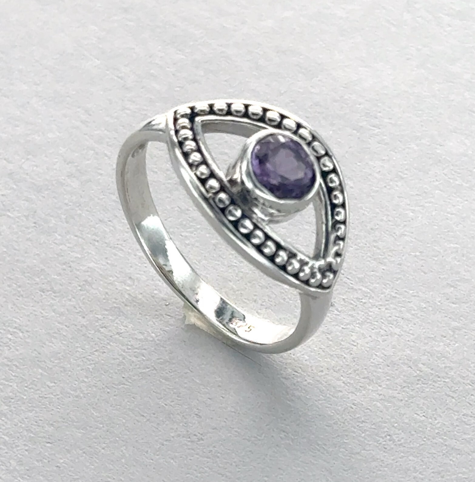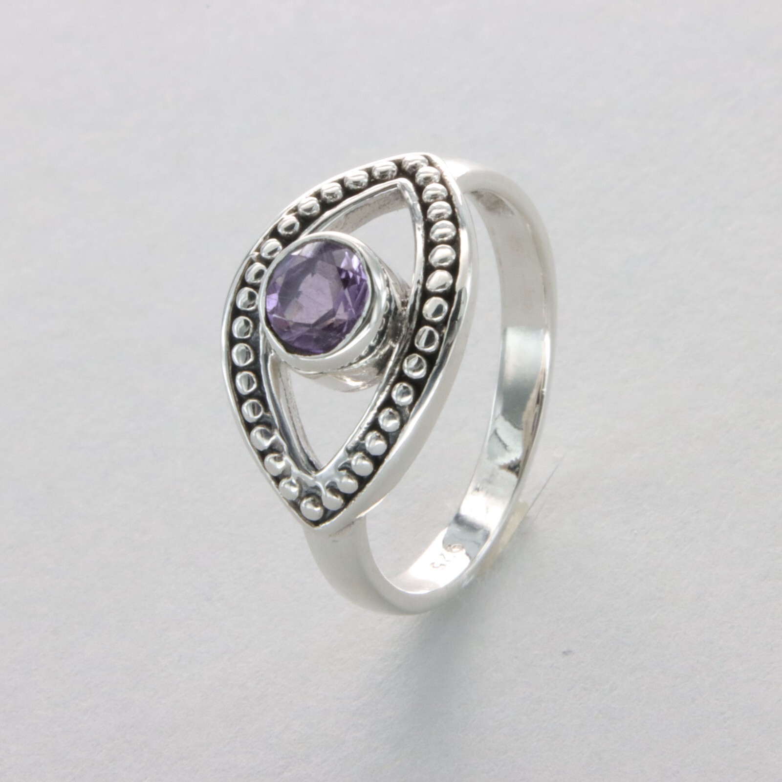 Round AMETHYST Ring Eye Multiple Sizes Natural Gemstone 925 STERLING SILVER 34e