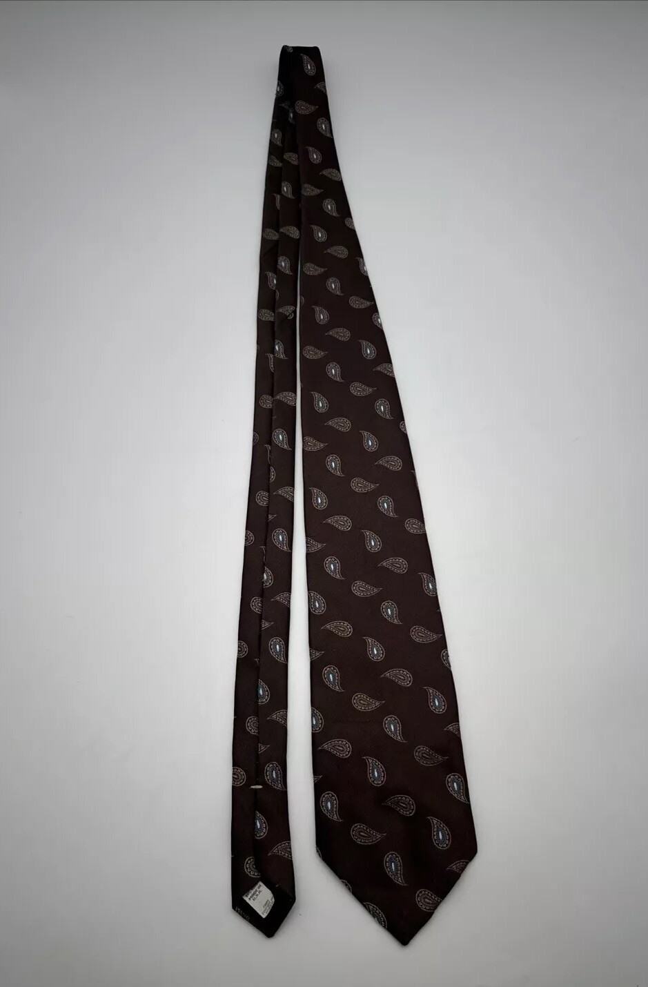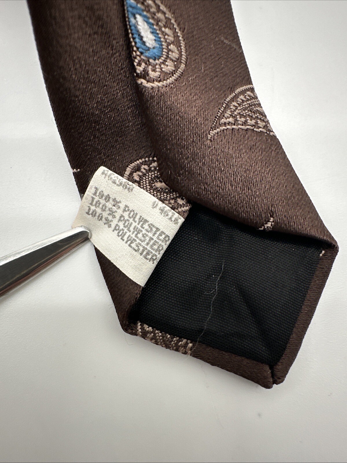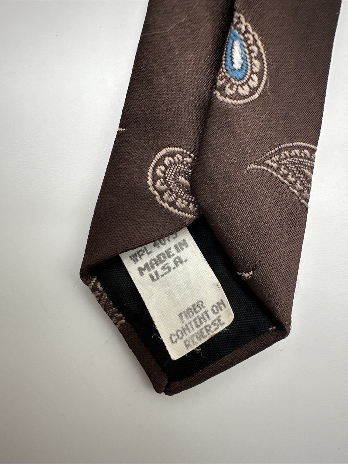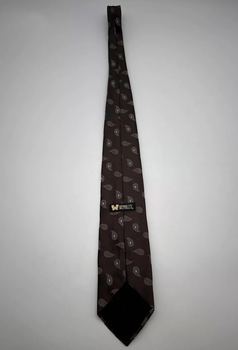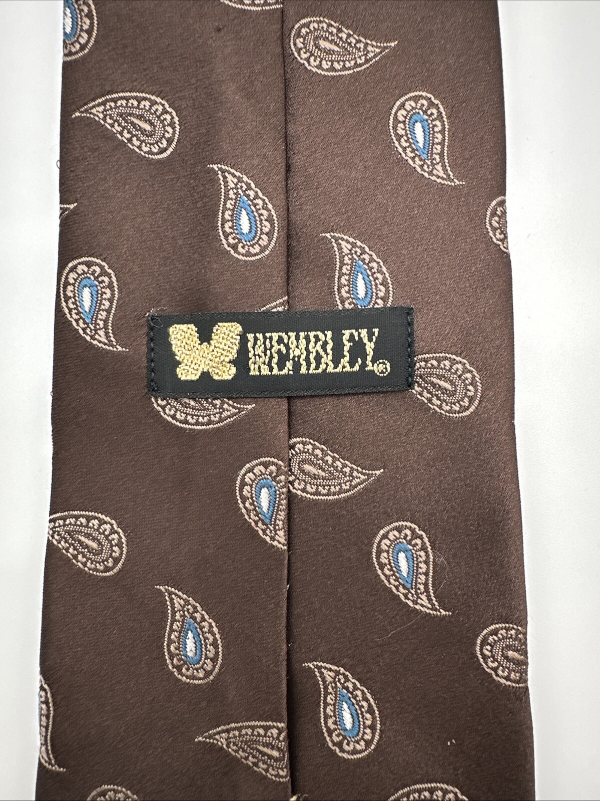 Wembley Tie Mens Brown Paisley Logo Made In USA - Used 83