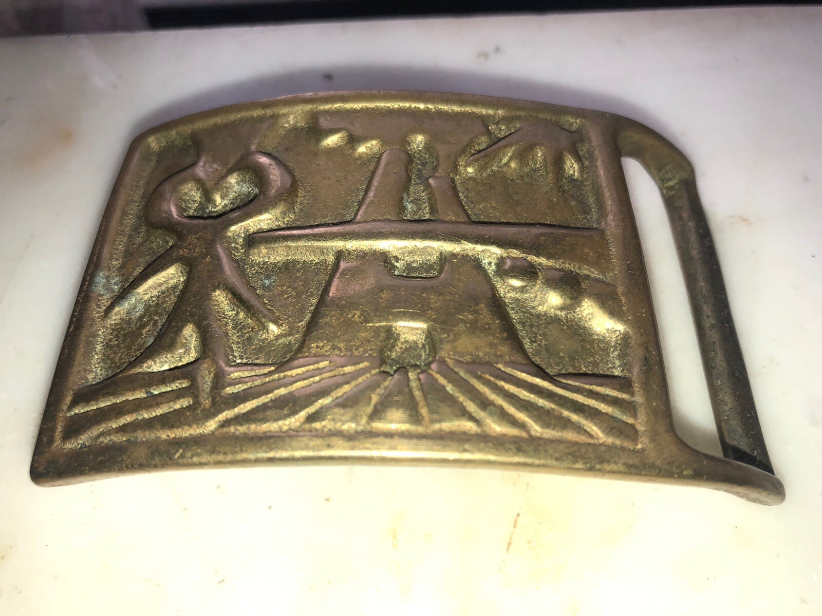 Duncan Laurie 1969 Figural Figure Horizon Brass Belt Buckle - Rare Earth