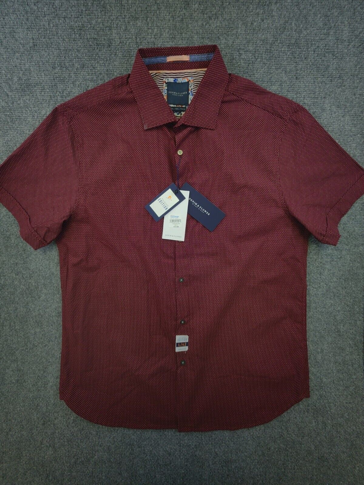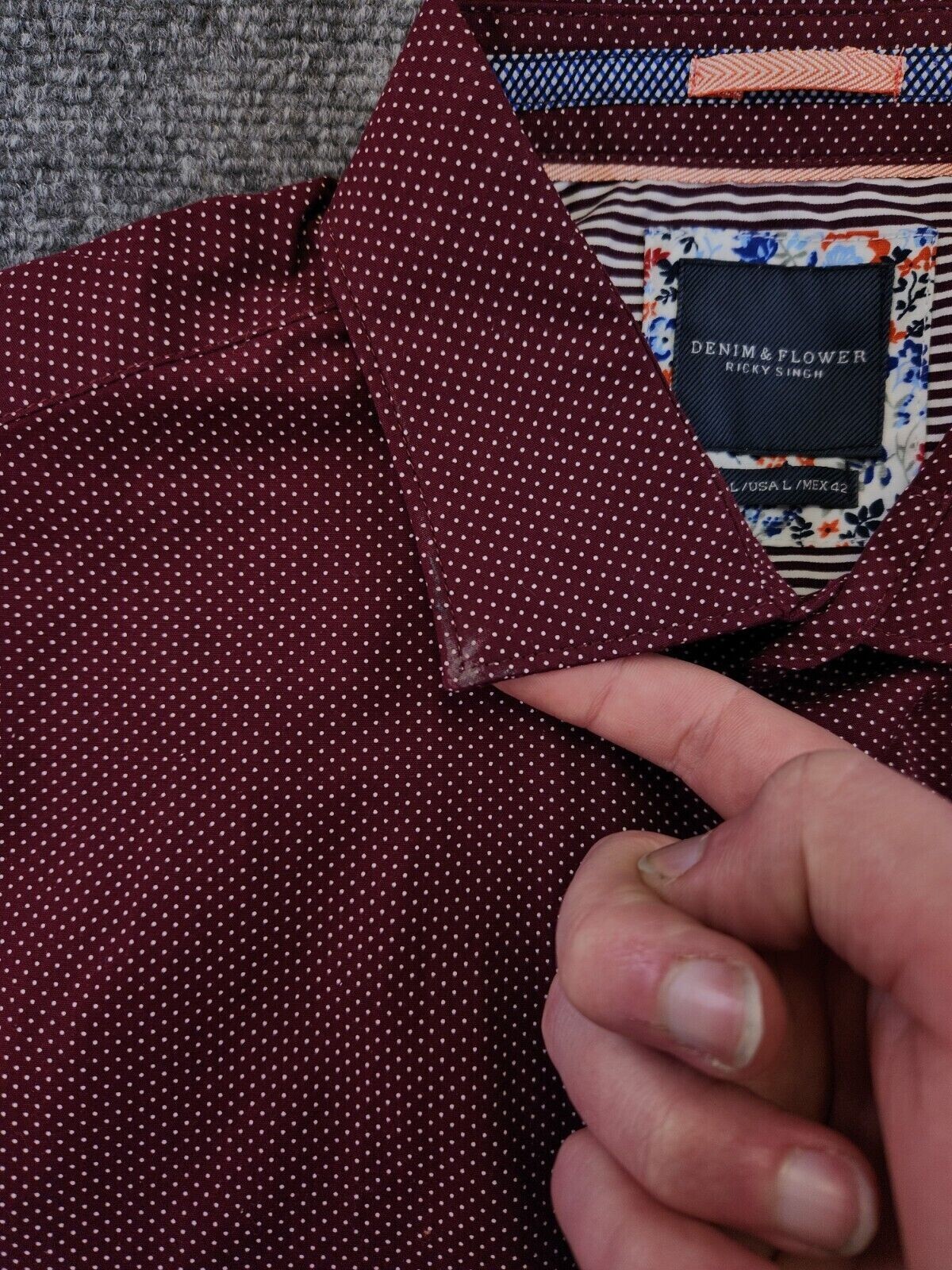 NWD Denim Flower Ricky Singh Button Up Shirt Men Large 42 Red Maroon Polka Dot