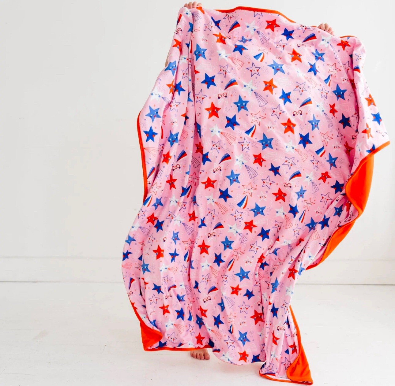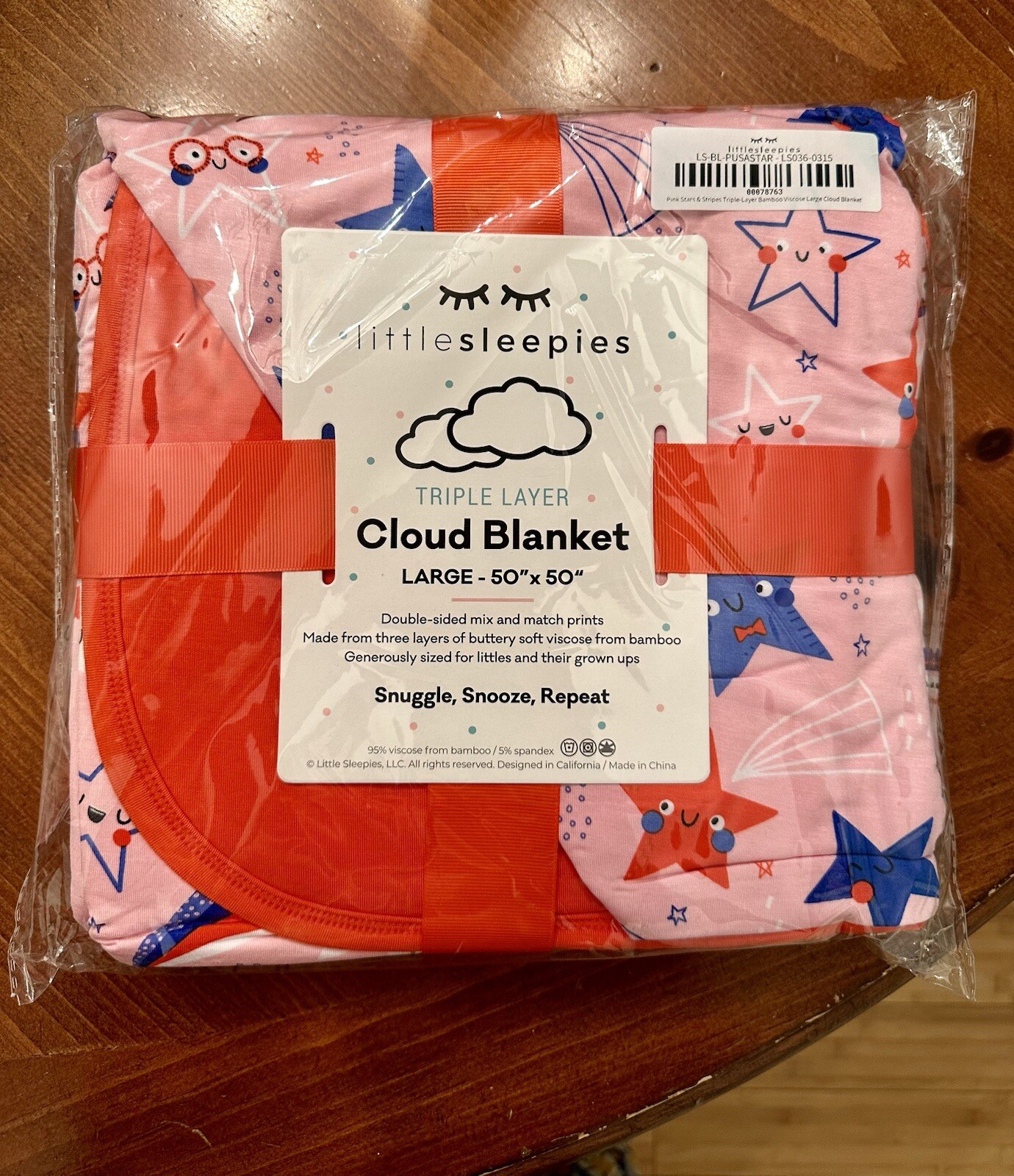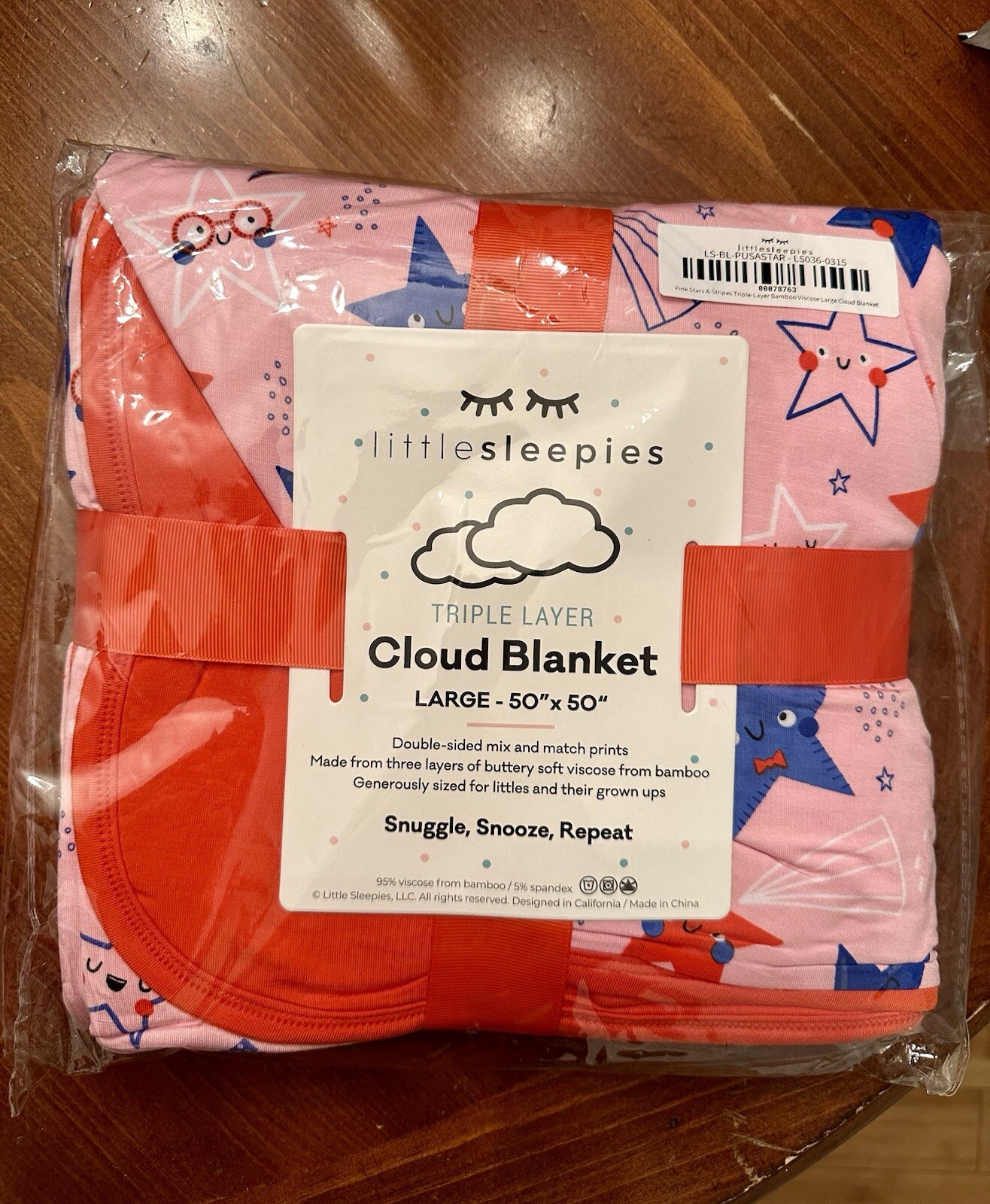 NIB Little Sleepies Pink Stars Stripes Large Cloud Bamboo Blanket