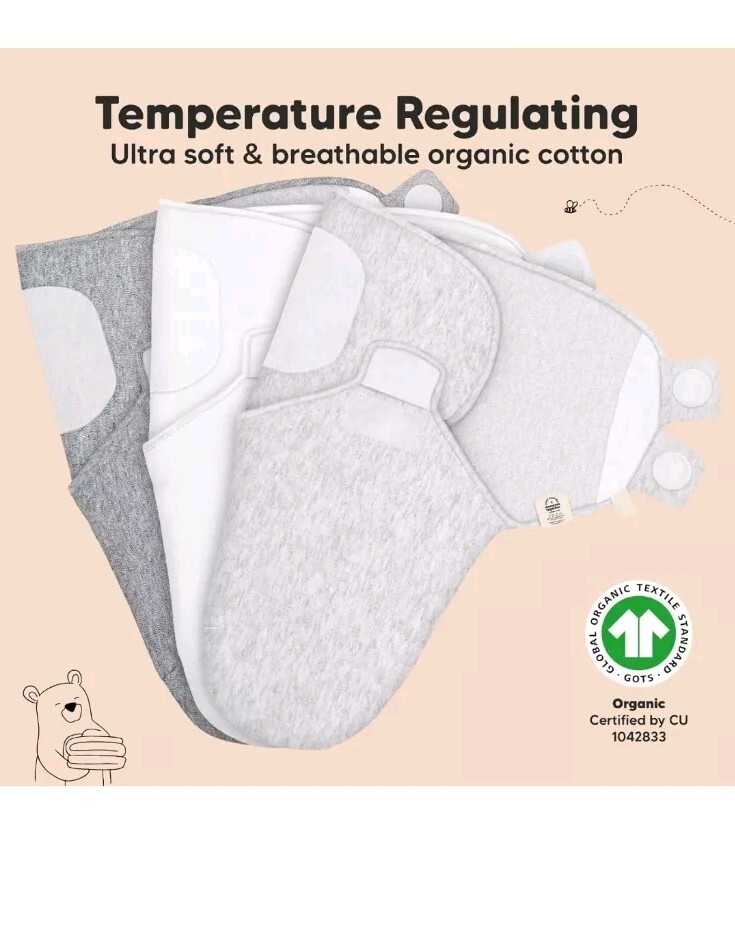 как выглядит KeaBabies 3-Pack Organic Baby Swaddle Sleep Sacks - Newborn 0-3 Months 7-15 lbs фото