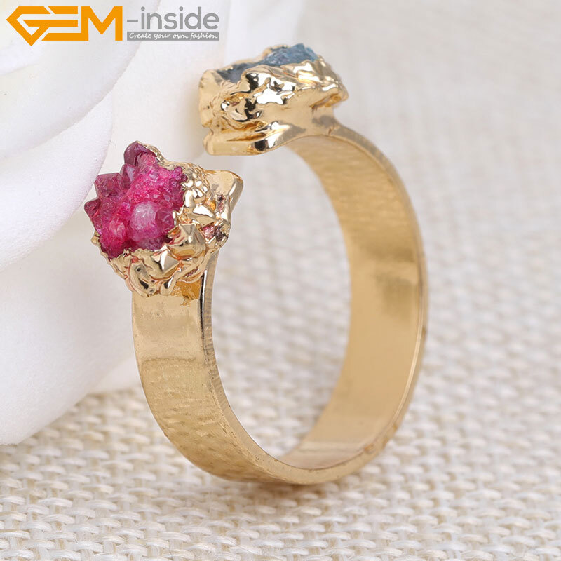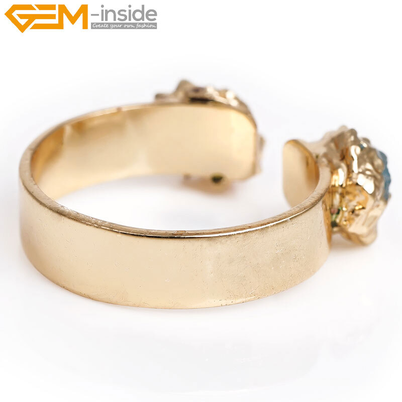 Yellow Gold Plated Double Multicolor Ring For Women Quartz Druzy Adjustable Size