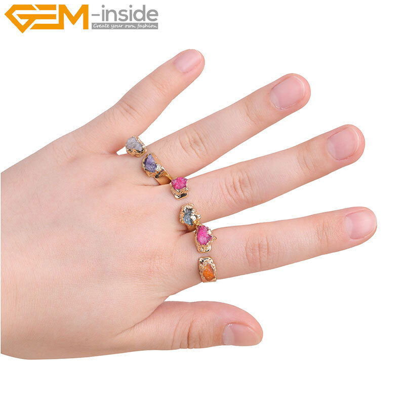 как выглядит Yellow Gold Plated Double Multicolor Ring For Women Quartz Druzy Adjustable Size фото