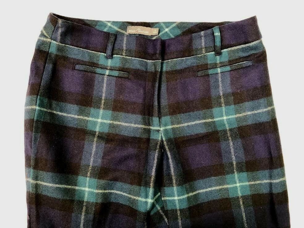 как выглядит Vintage LL Bean Black Watch Plaid Wool flat front bell bottoms size 10 NICE фото