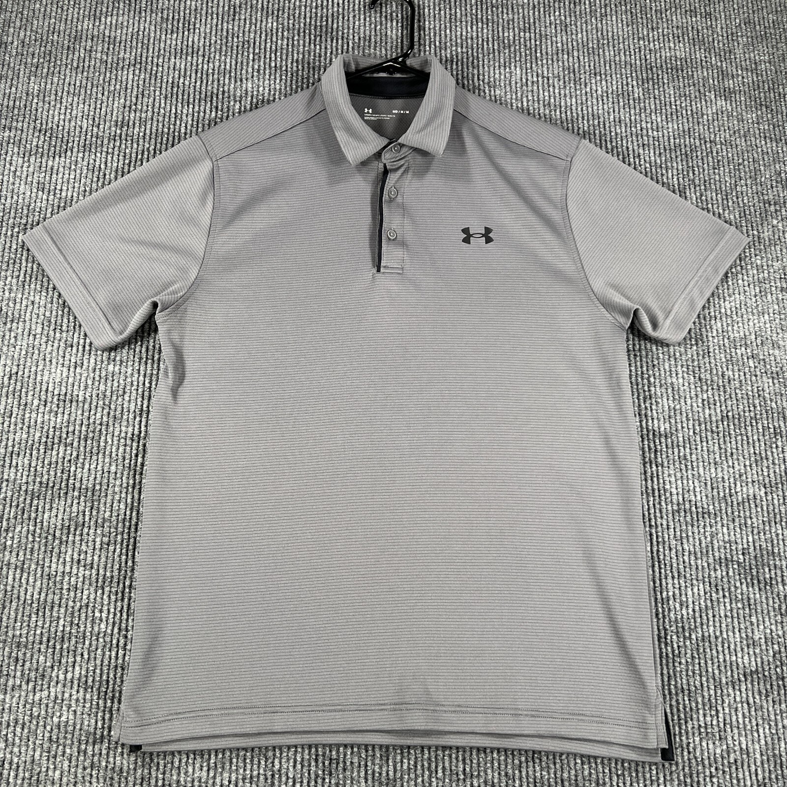 как выглядит Under Armour Polo Shirt Mens Medium Gray Short Sleeve Loose Fit Golf Casual фото