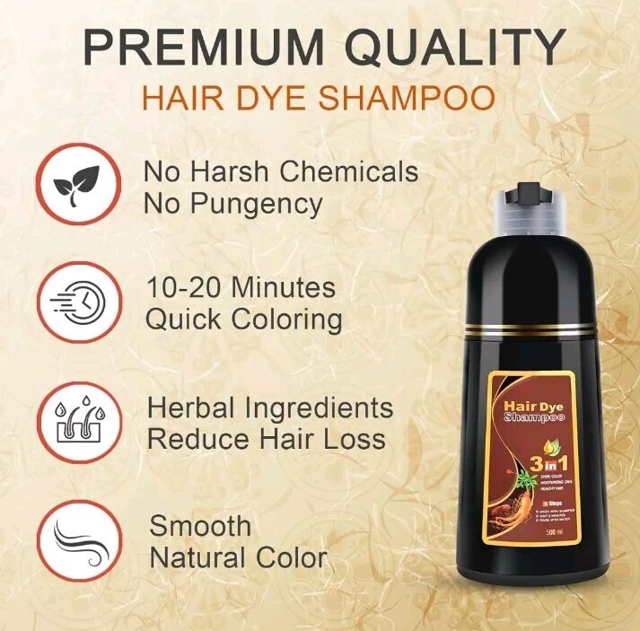 Hair Dye Shampoo Instant 3 in 1 100 Grey Coverage Dark Brown Herbal Ingredients