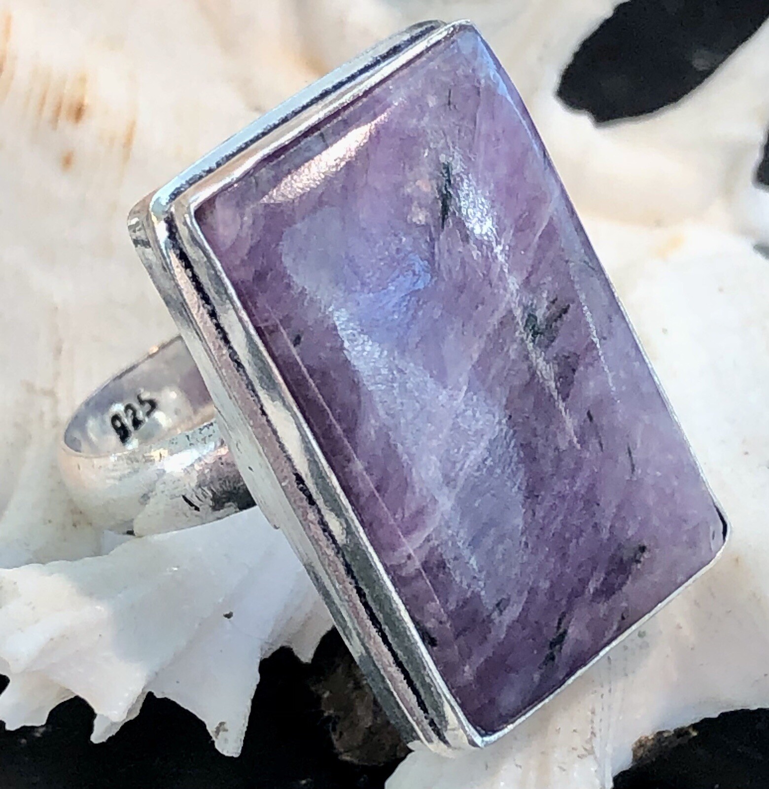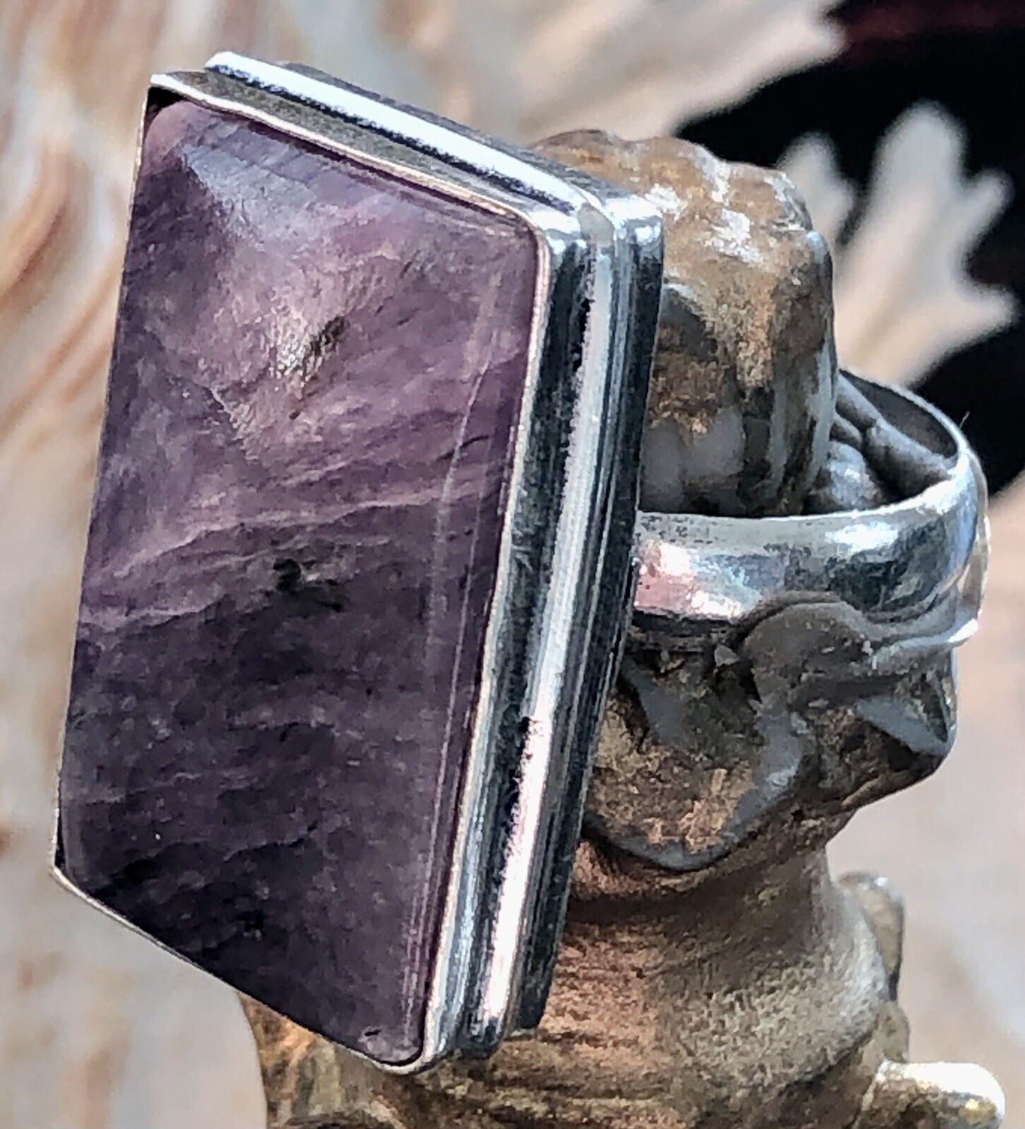 Large 1 Purple Russian Charoite Ring Rectangle .925 Sterling Silver Size 6.5