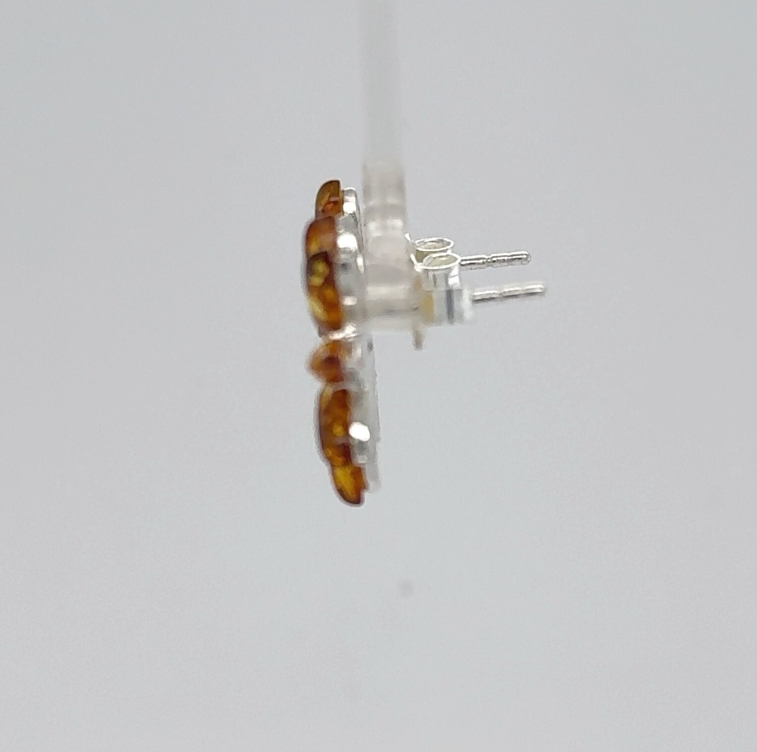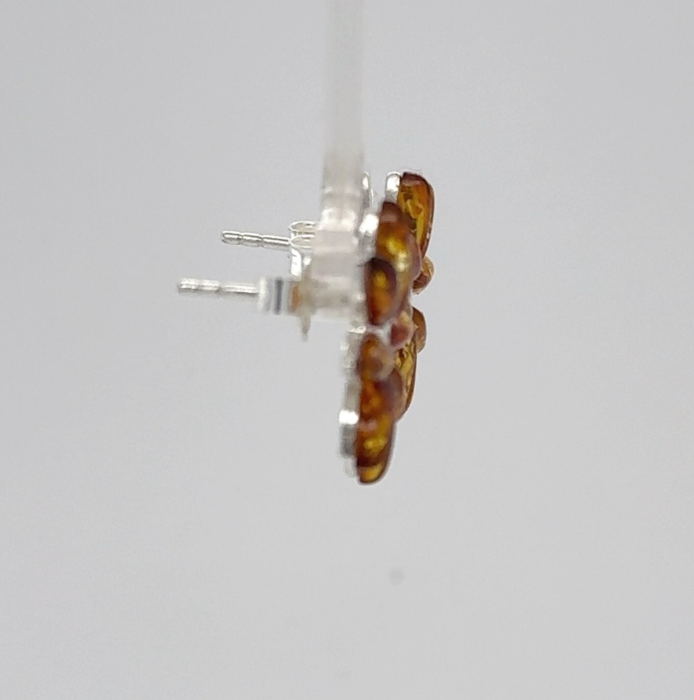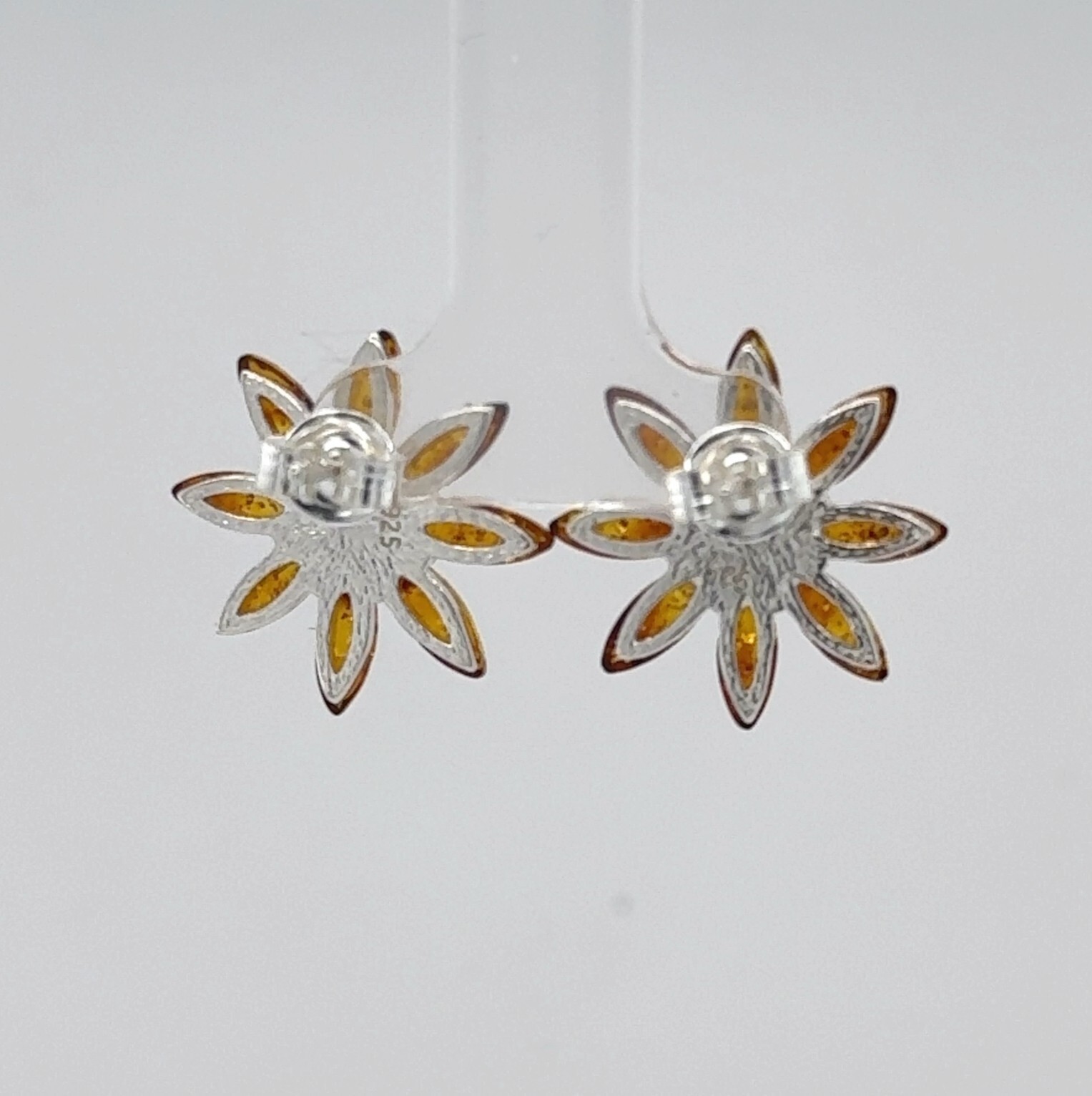Cognac / Brown BALTIC AMBER Stud Star Flower Earrings 925 STERLING SILVER 1261e