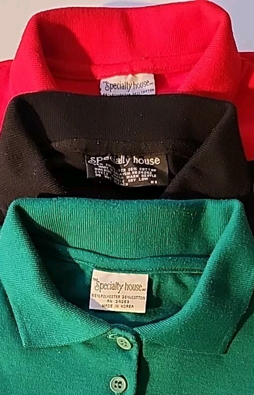 Vtg 3 Multicolored Specialty House Faux Collar Poly Cotton Button Polo Dickey